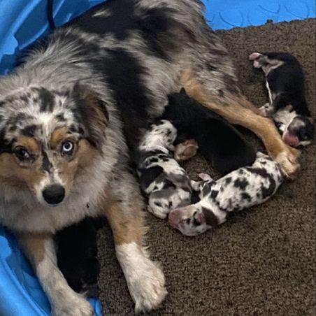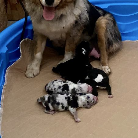 All of my dogs are genetically tested. Results are made public. I keep prices affordable. I believe everyone should be able to afford to have an Aussie in their life. I love to be able to see the smiles on the faces of a new puppy parent. In order to maintain the health and well being of our pups, we are a closed kennel. I take lots of pictures and videos to document the growth of your puppy! I will not take daily photos!