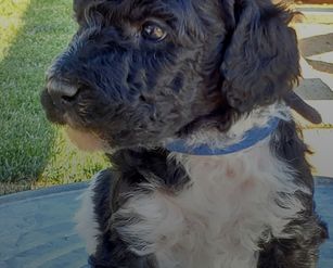 Our Sheepadoodle puppies are black and white. Poodle puppies include brown, parti, and brindle. Colors will vary depending on the parent dogs.