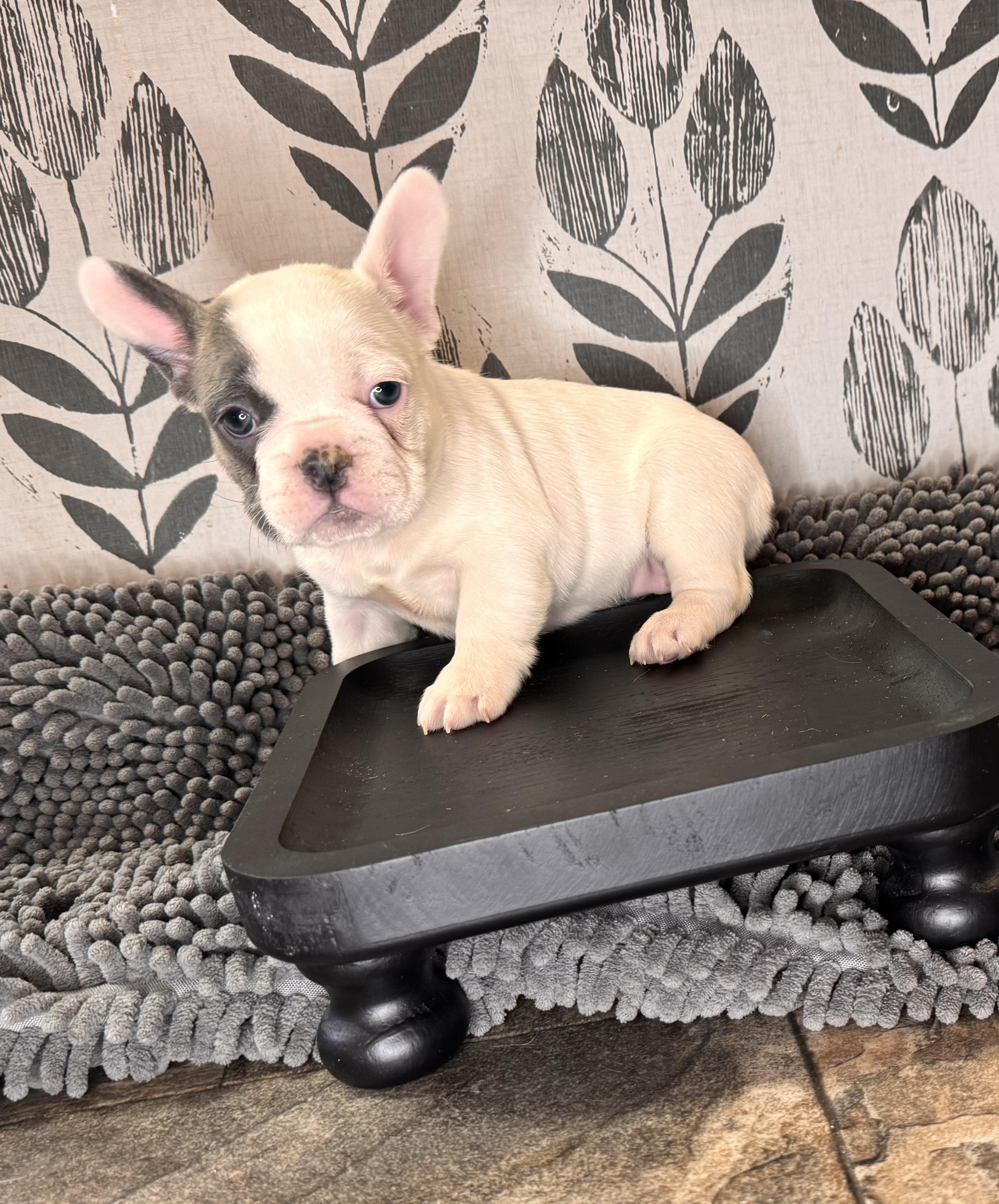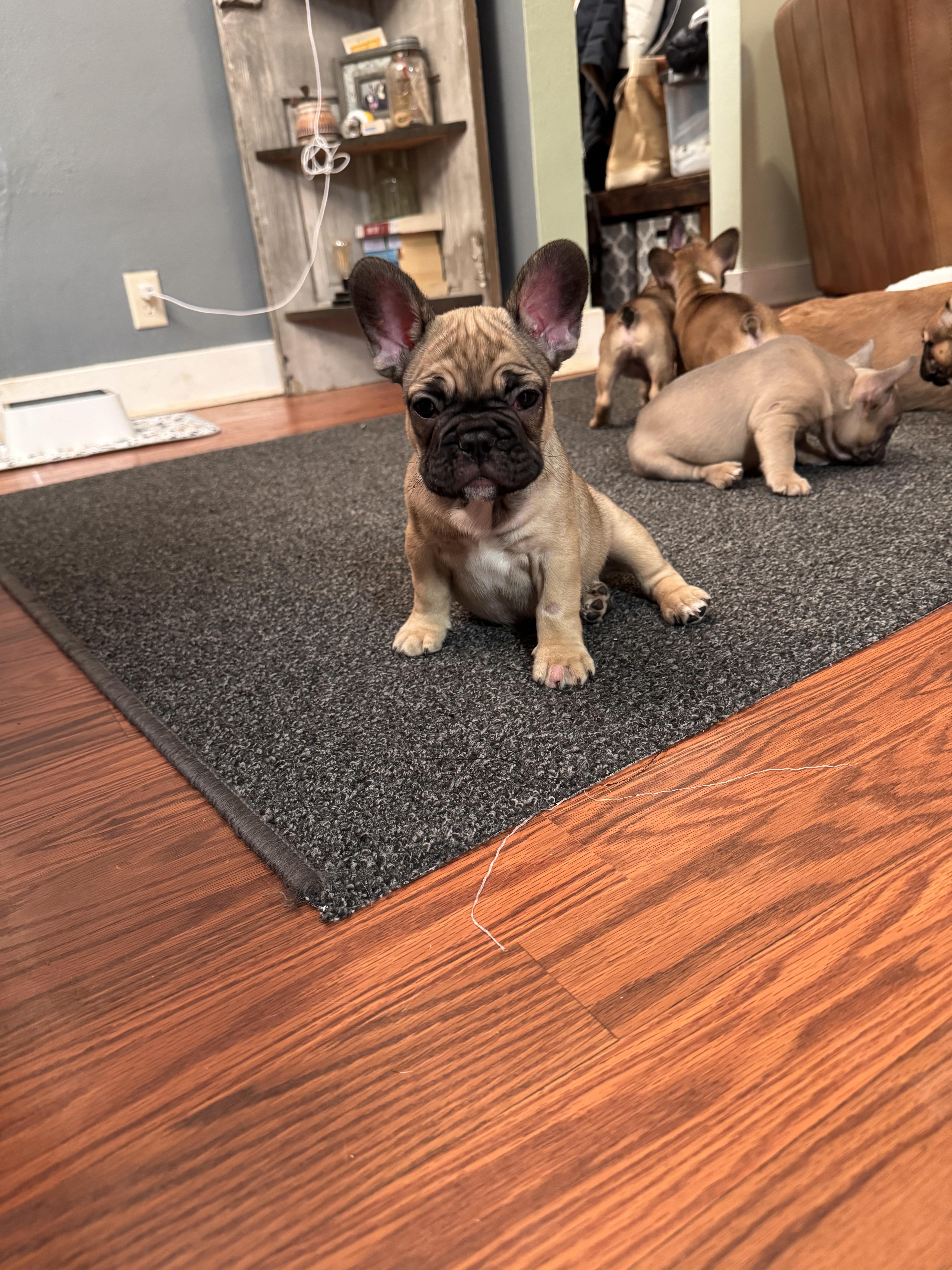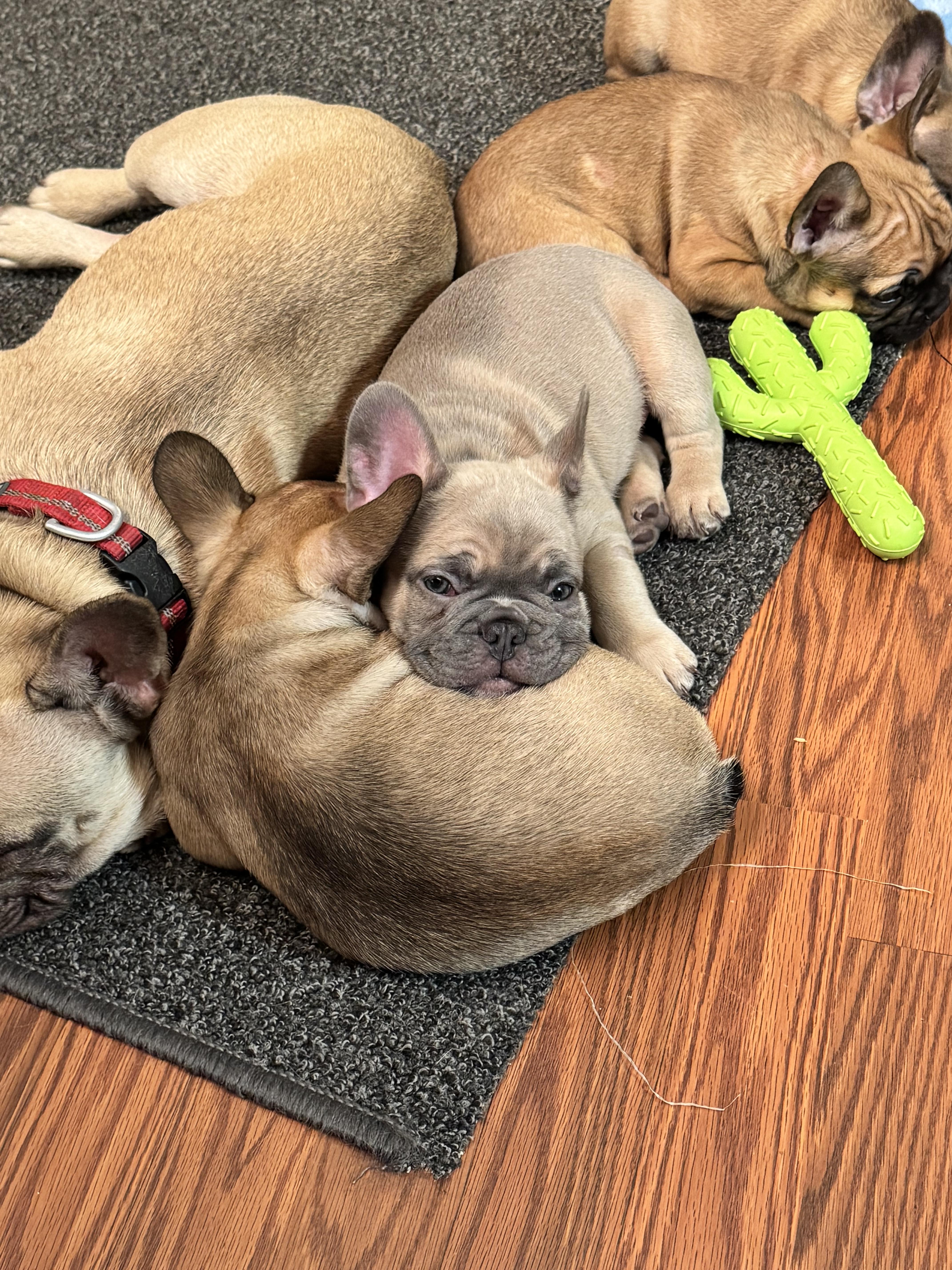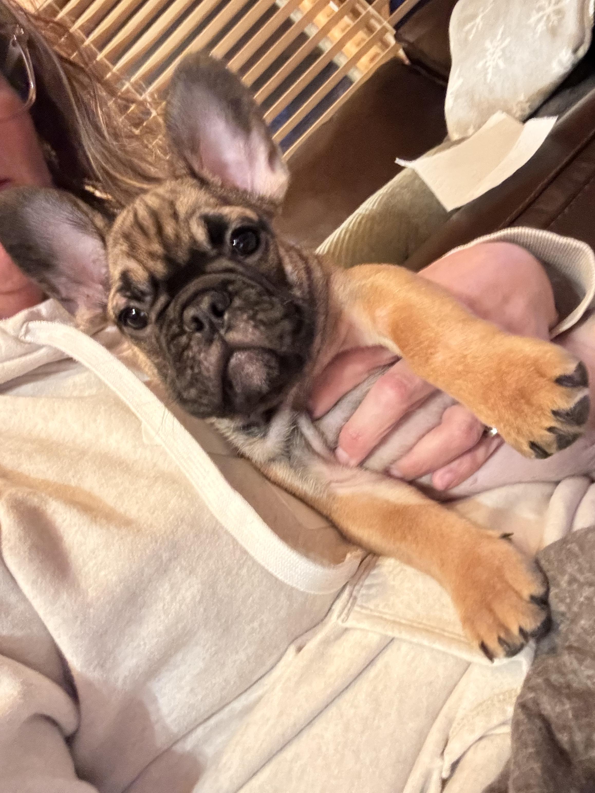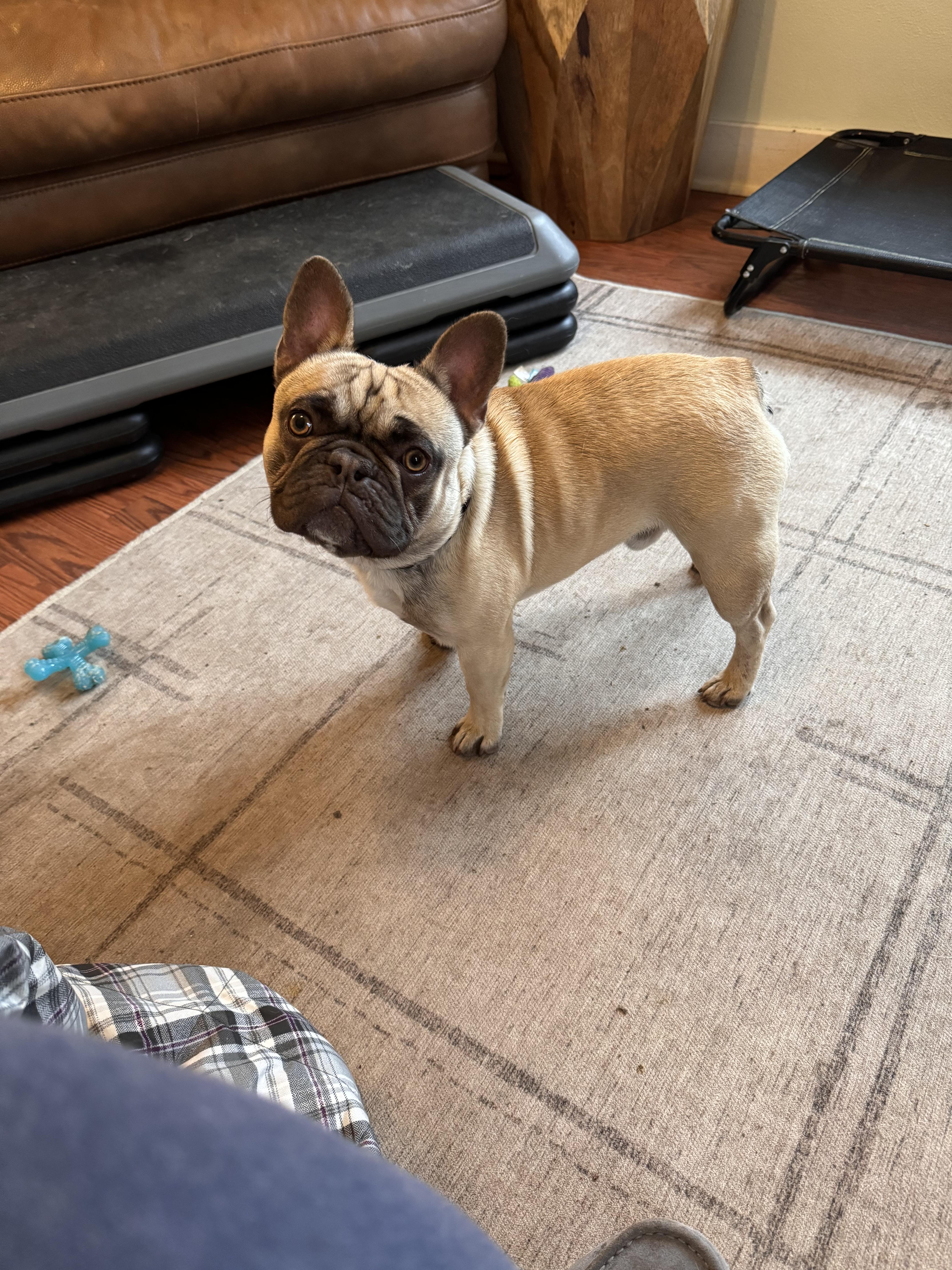 She is a Blue Fawn Sable - Fluffy French Bulldog. Her fur is the softest and she is a great snuggler!! Loves to be the boss of the boys in our house and play with her toys - we refer to her as our little princess and she knows it!!