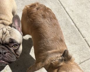 “Bertha is a Fluffy French Bulldog with the fluffy gene passed to her litter. This is not as common in the French Bulldog line. Gary is a standard French Bulldog with a short compact body. They are Non-refundable but do understand that life changes may mean you have to wait for the next litter.”