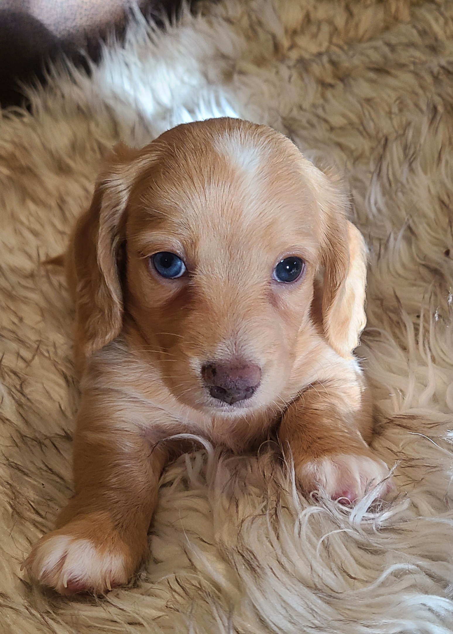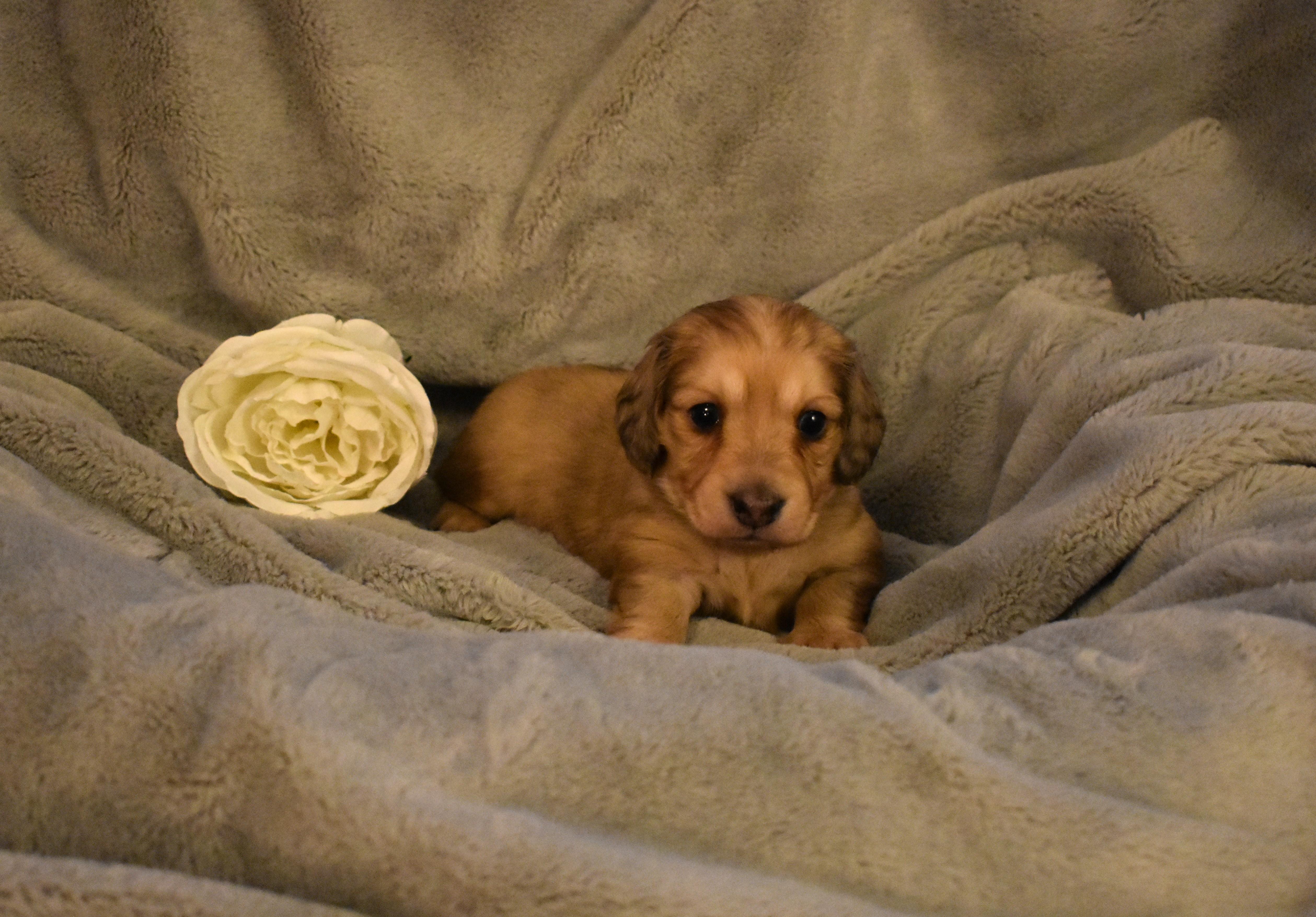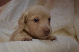 I received my shaded cream boy Obi-Wan from Sandy. She was very quick and responsive to inquires. She was helpful with going through the process of adaption. Once we met up she had a wonderful puppy care-package to help with the transition from her home to mine. I love my boy and would totally recommend adapting from Sandy at Discovery Dachs.