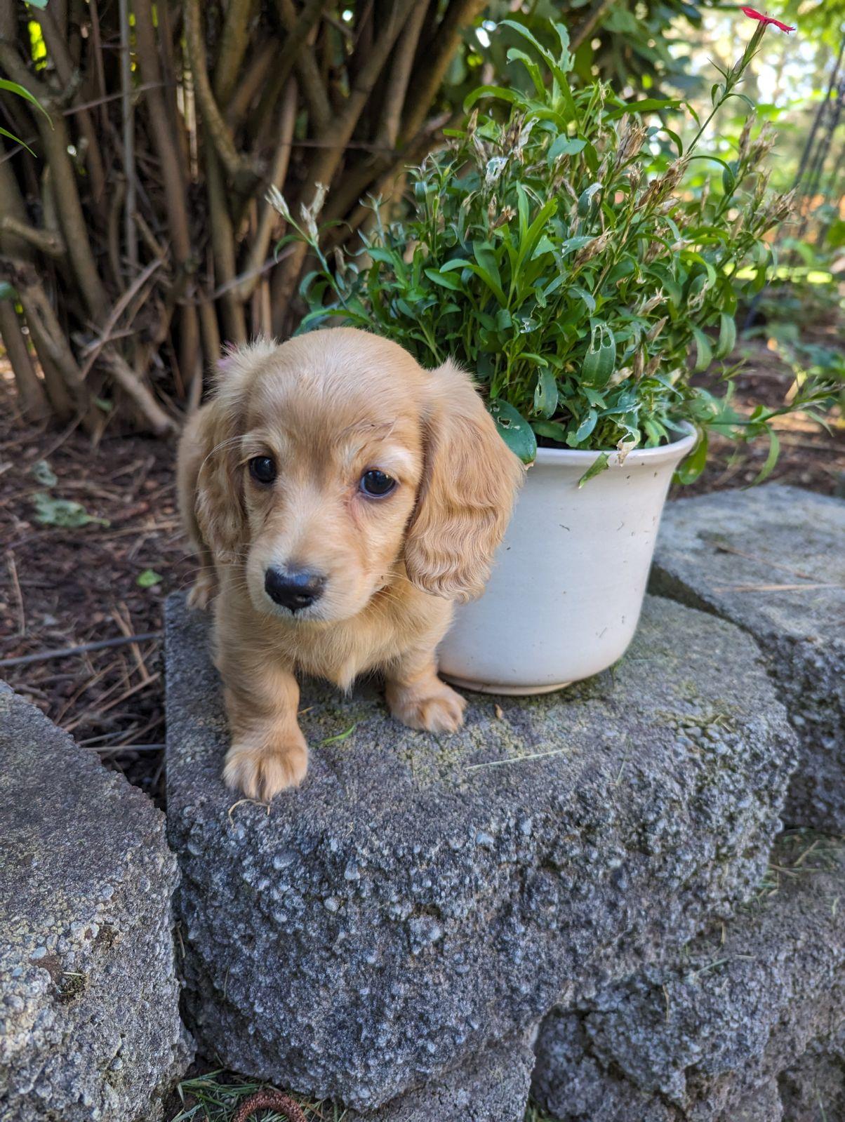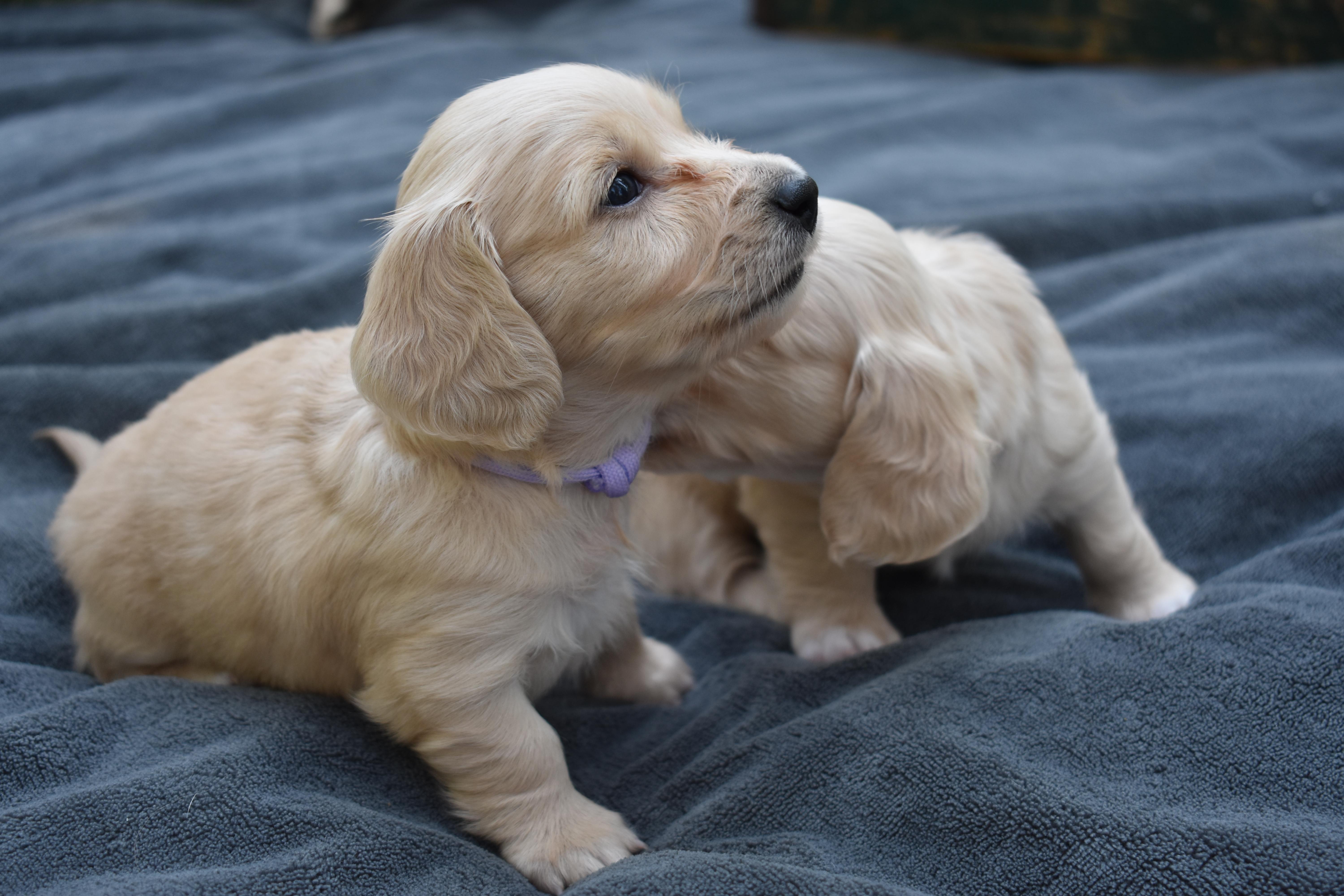 Our puppies include cream, red, black and tan, and dapple. Colors will vary depending on the parent dogs.