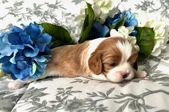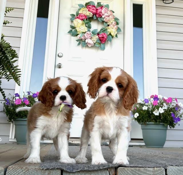Our puppies include blenheim and tri-color. Colors will vary depending on the parent dogs.