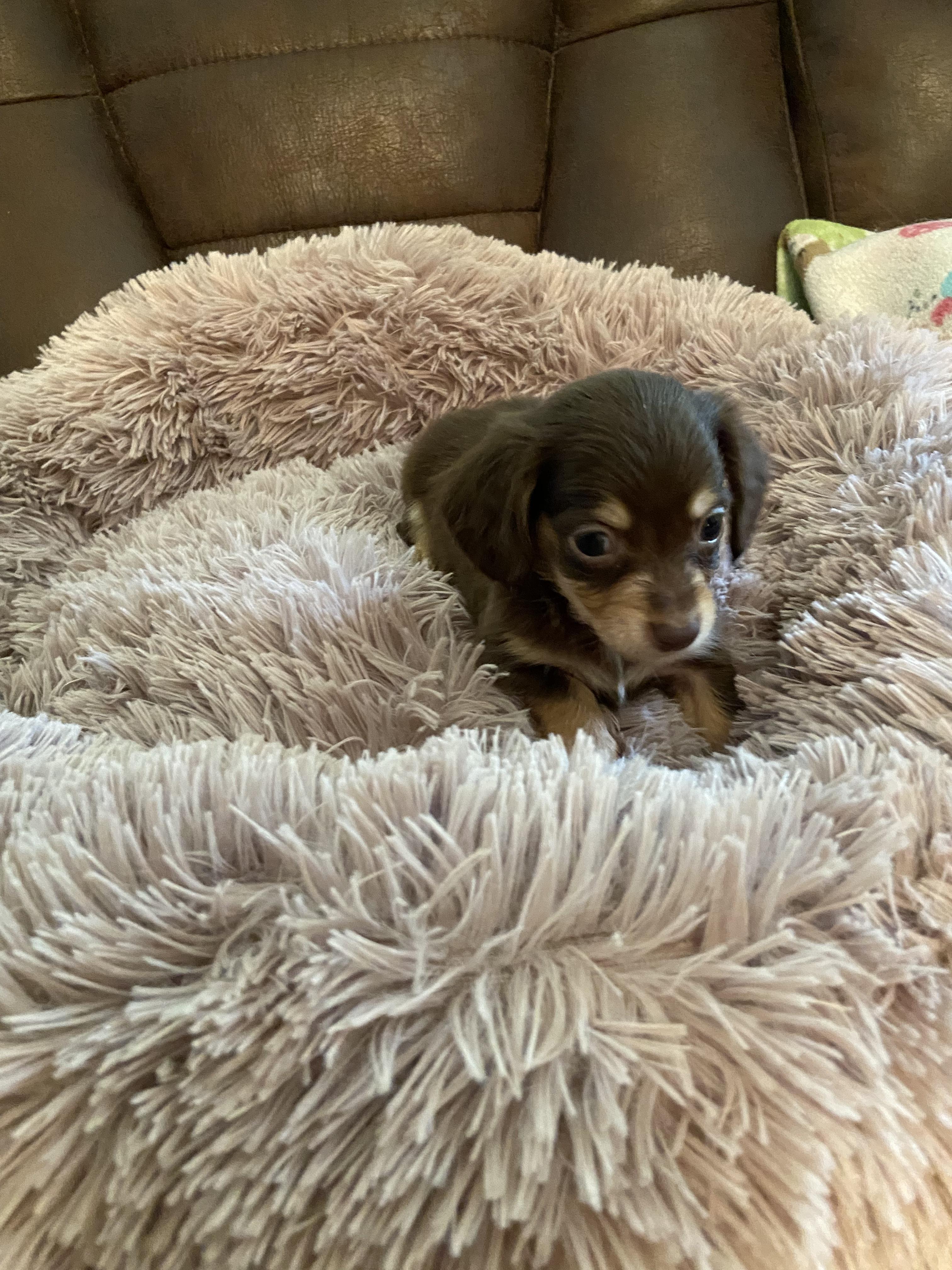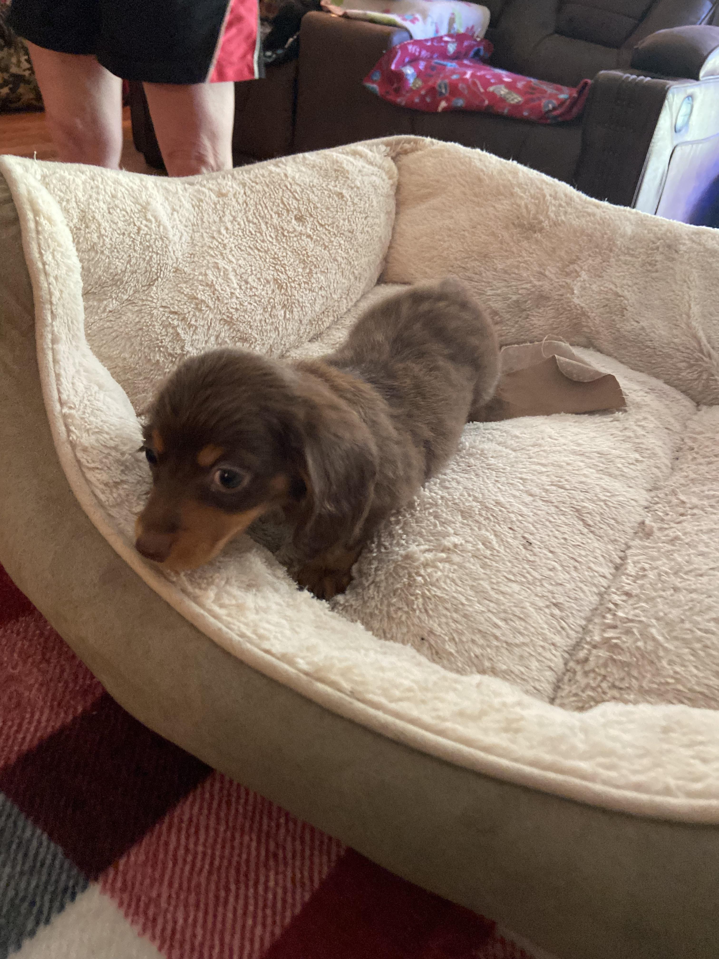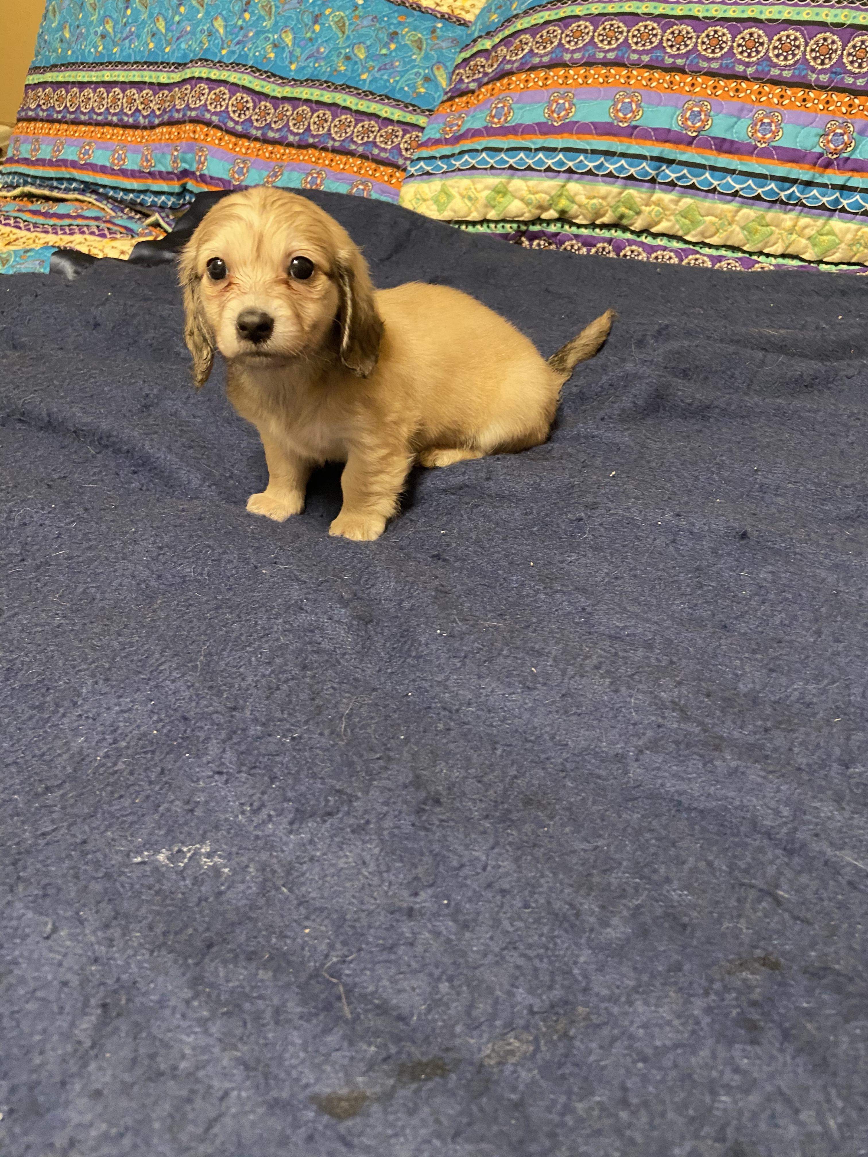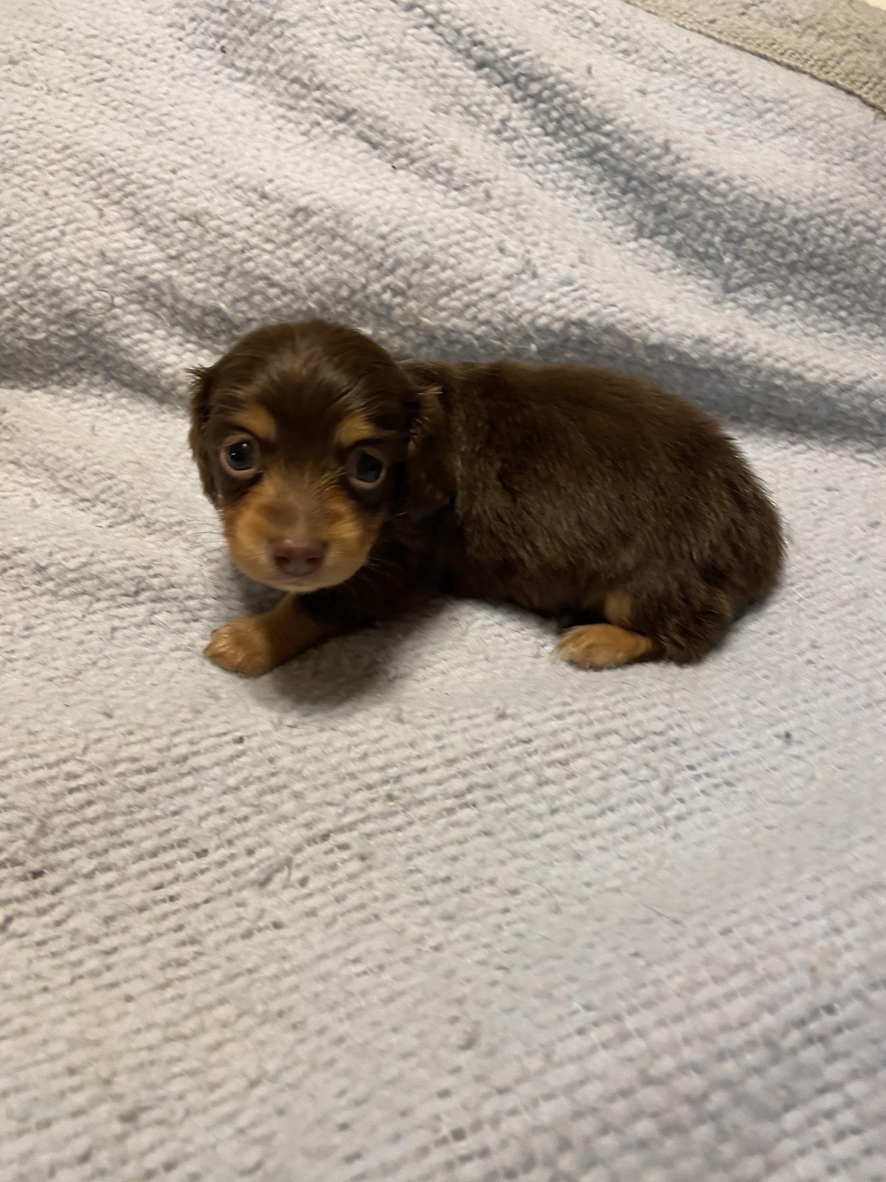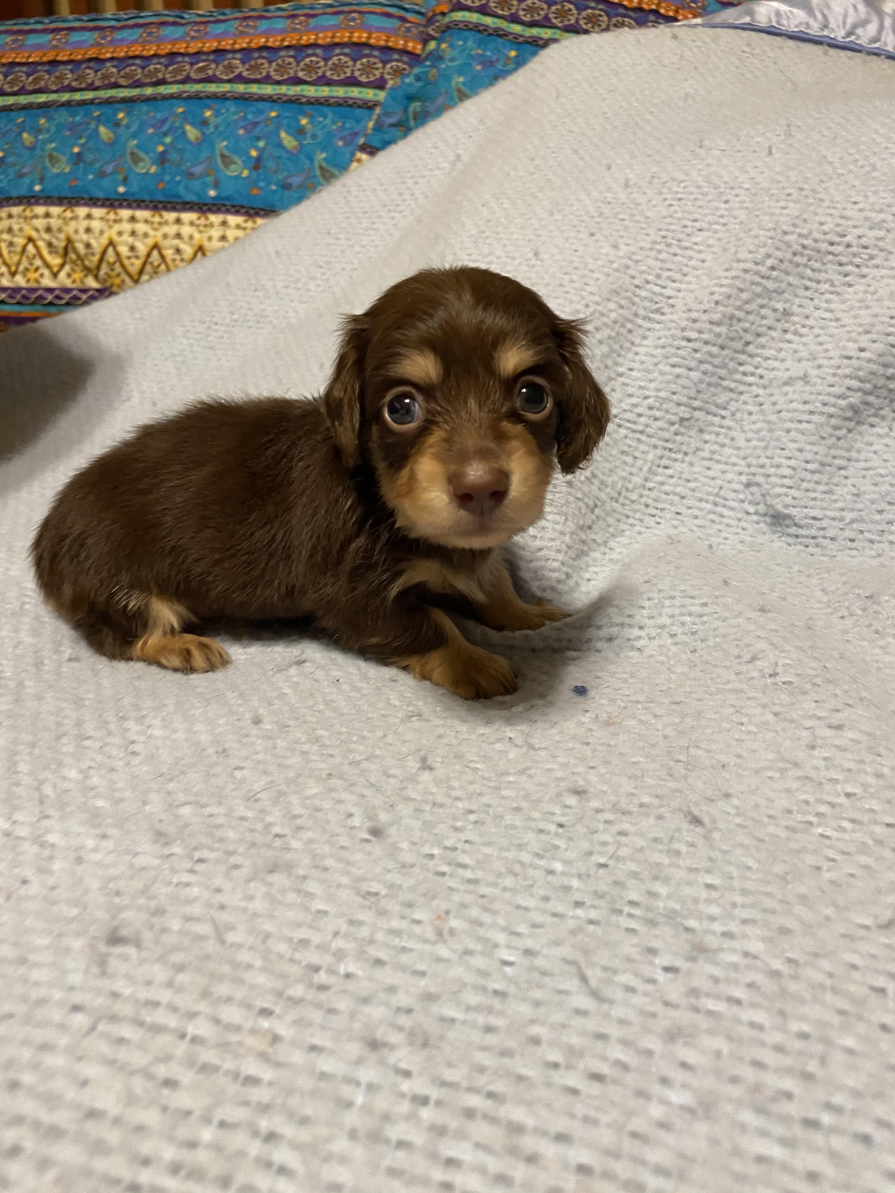 I'm Patricia F., the breeder behind Divine Doxies located in Little Rock, AR. Divine Doxies breeding program is a small breeder of quality long-haired miniature dachshunds. We breed for temperament, comformation and health to the AKC standard.