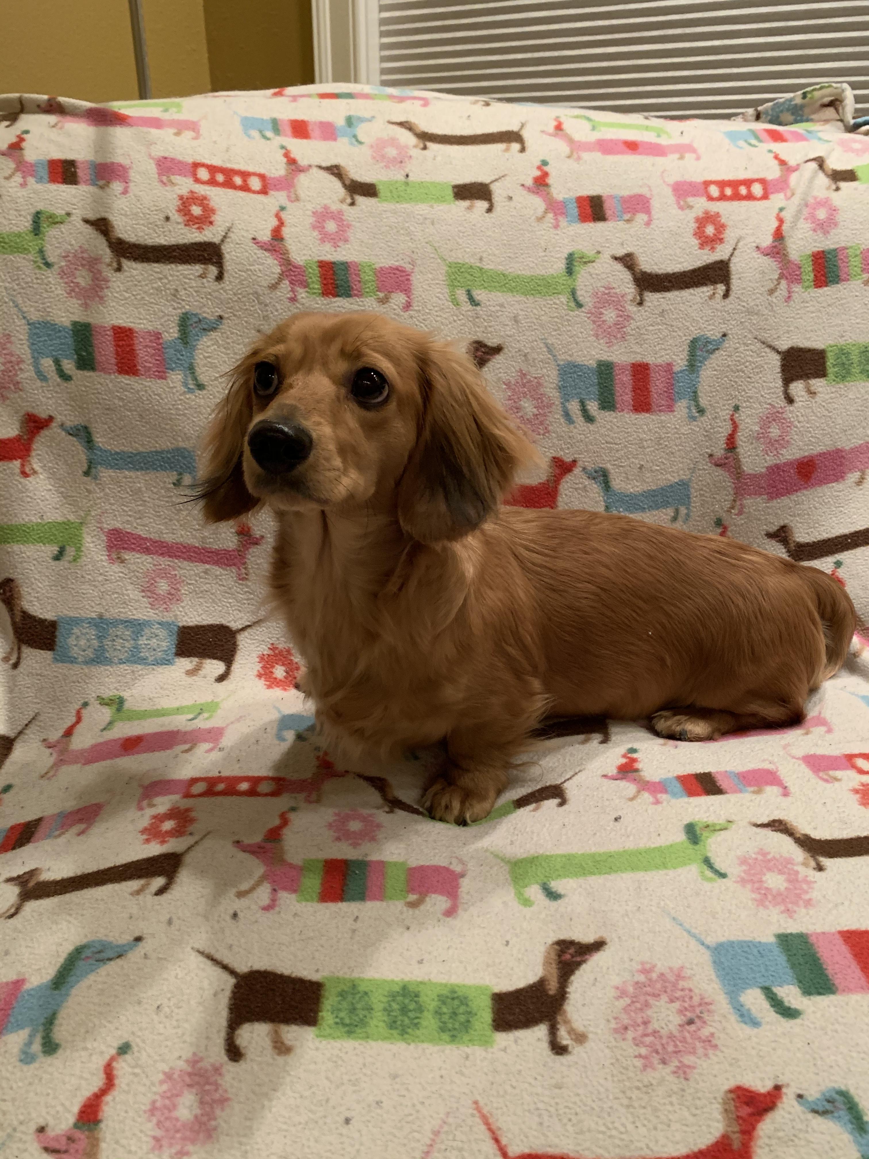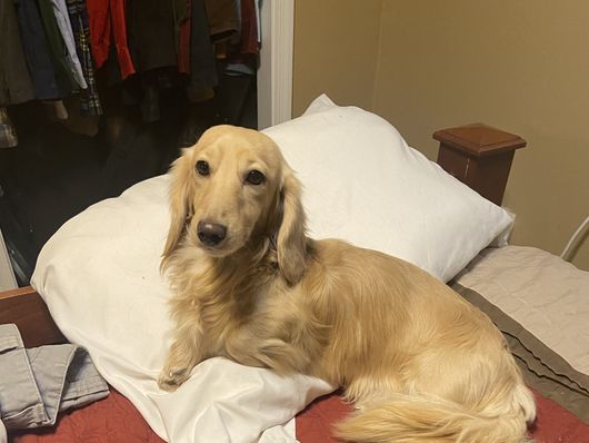 Finley is a male Dachshund. Carefully selected as a great representative of his breed, Patricia decided to make him part of their program. Patricia has passed Good Dog’s screening process, which involved a review of their breeding practices, environment, and the mental and physical health of their dogs.