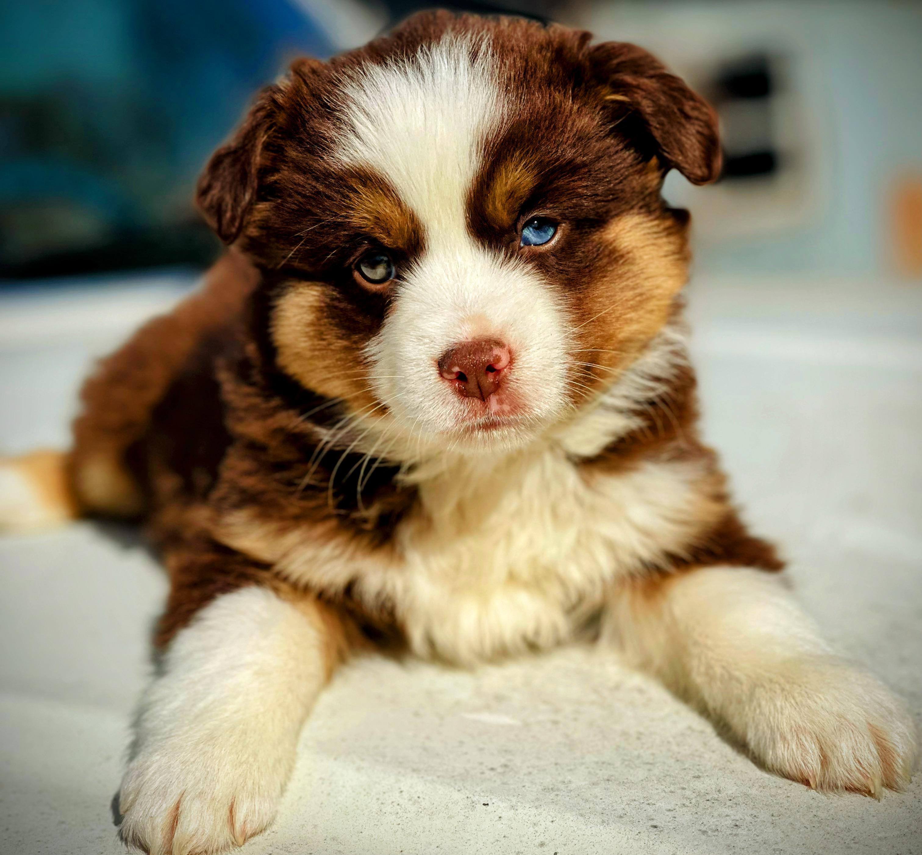 Our Miniature Australian Shepherd puppies include blue merle, black tri, red tri, and red merle. Colors will vary depending on the parent dogs.