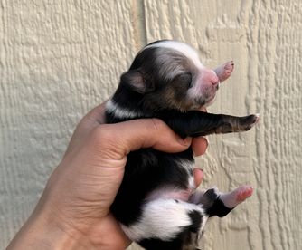 Our puppies include chocolate, tri-colored, chocolate and tan, chocolate merle, blue merle, and black and tan. Colors will vary depending on the parent dogs.