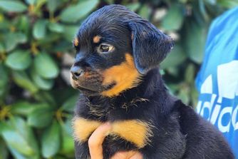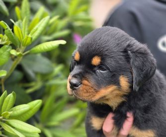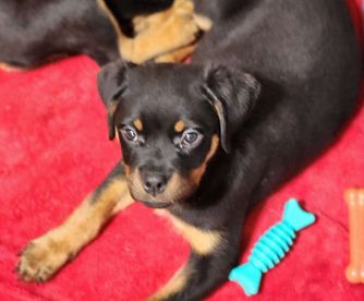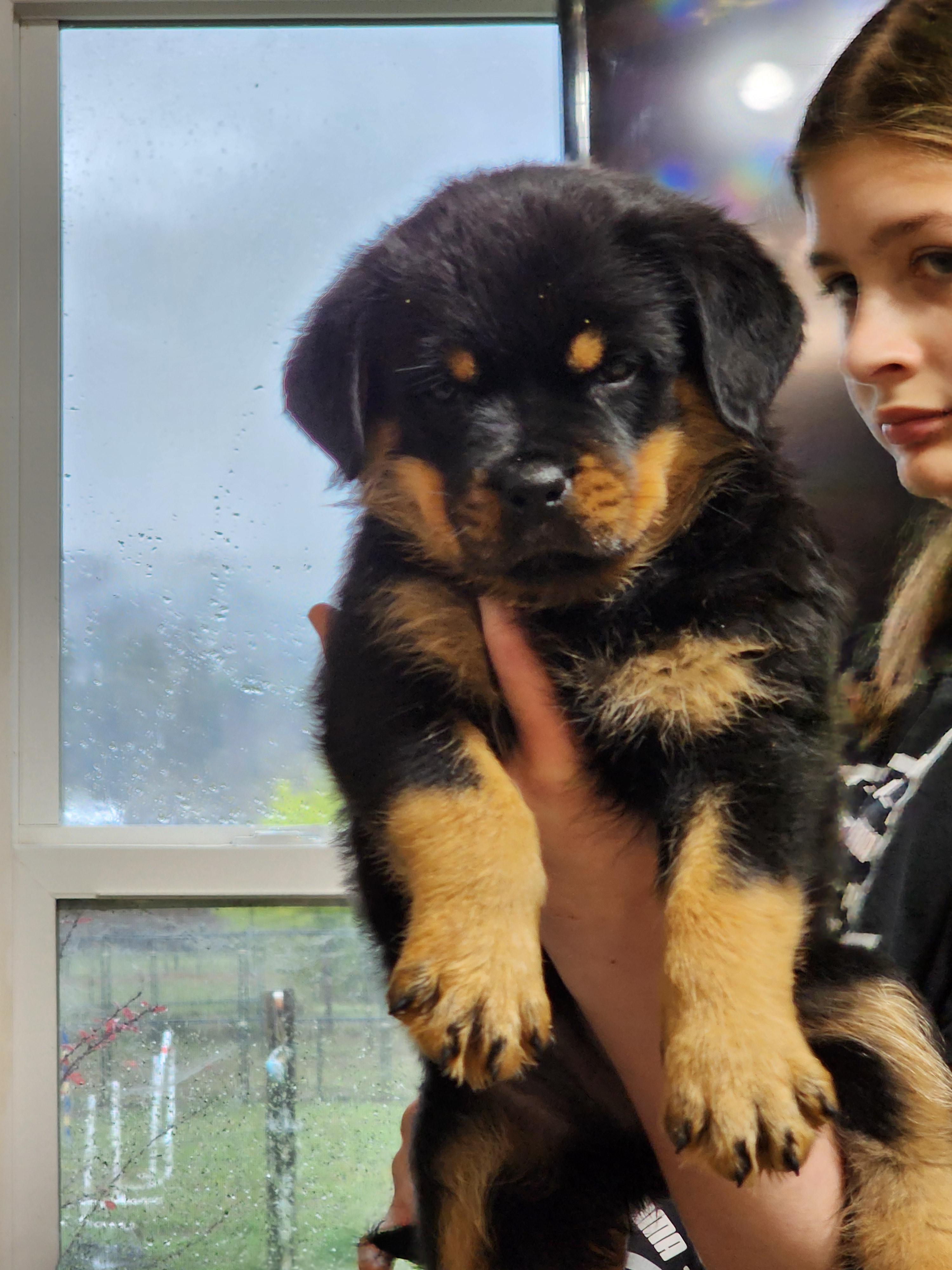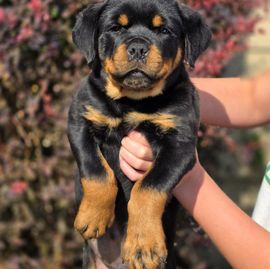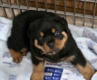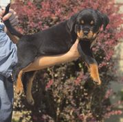 I'm Karen N., the breeder behind Divine Rottweilers located in Cottage Grove, OR. We raise AKC German Rottweiler puppies from OFA health tested JLPP negative import parents with top bloodlines and the best temperaments. We raise Rottweilers with large block heads and lots of muscle. Our pups are socialized from birth with kids and animals, we also desensitize our pups to as many things as possible so the transition to new homes is much easier.