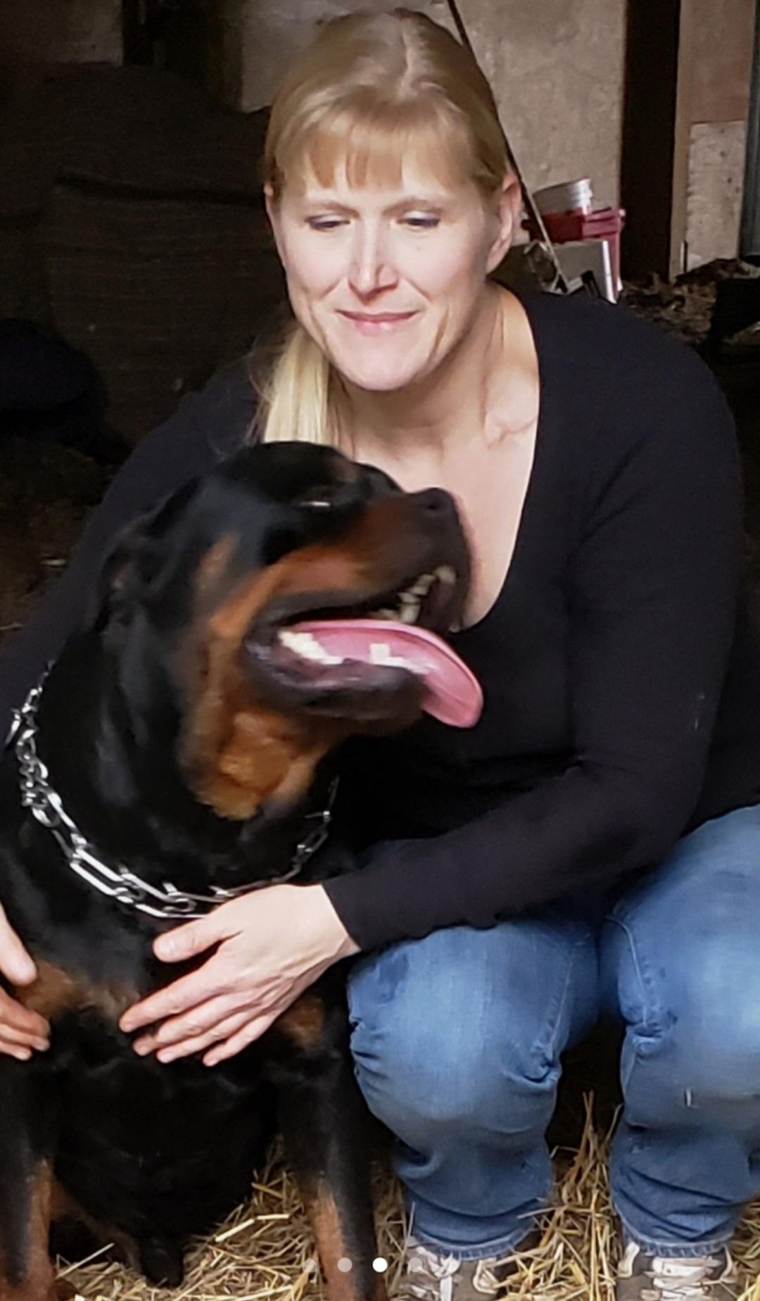 AJSHA is a female Rottweiler. Carefully selected as a great representative of her breed, Karen decided to make her part of their program. Karen has passed Good Dog’s screening process, which involved a review of their breeding practices, environment, and the mental and physical health of their dogs.