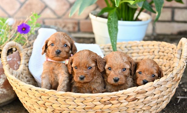 Our puppies include apricot, chocolate, black and white, black, blenheim, and red. Colors will vary depending on the parent dogs.
