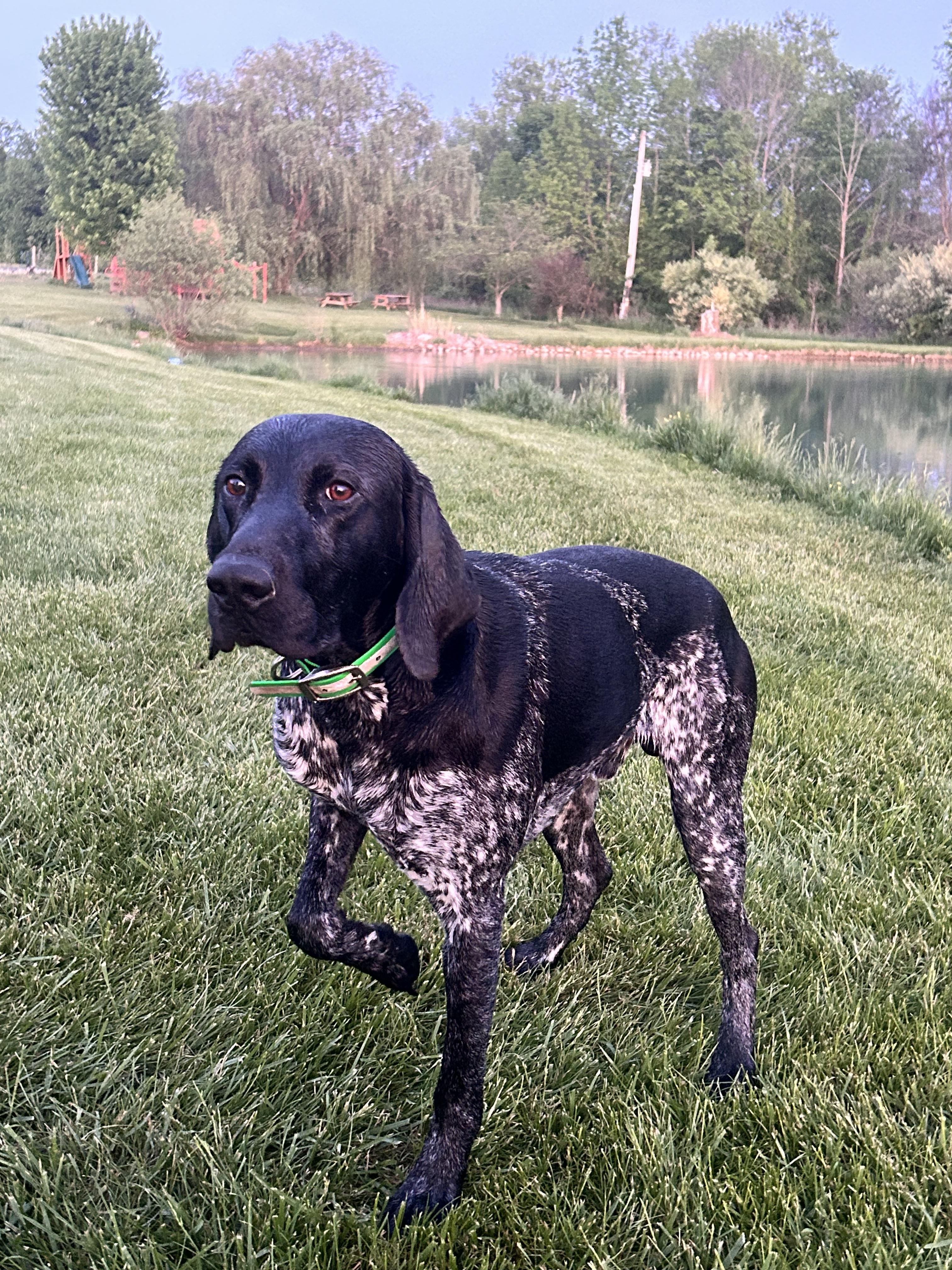 Our puppies include black roan, black and white, and liver roan. Colors will vary depending on the parent dogs.