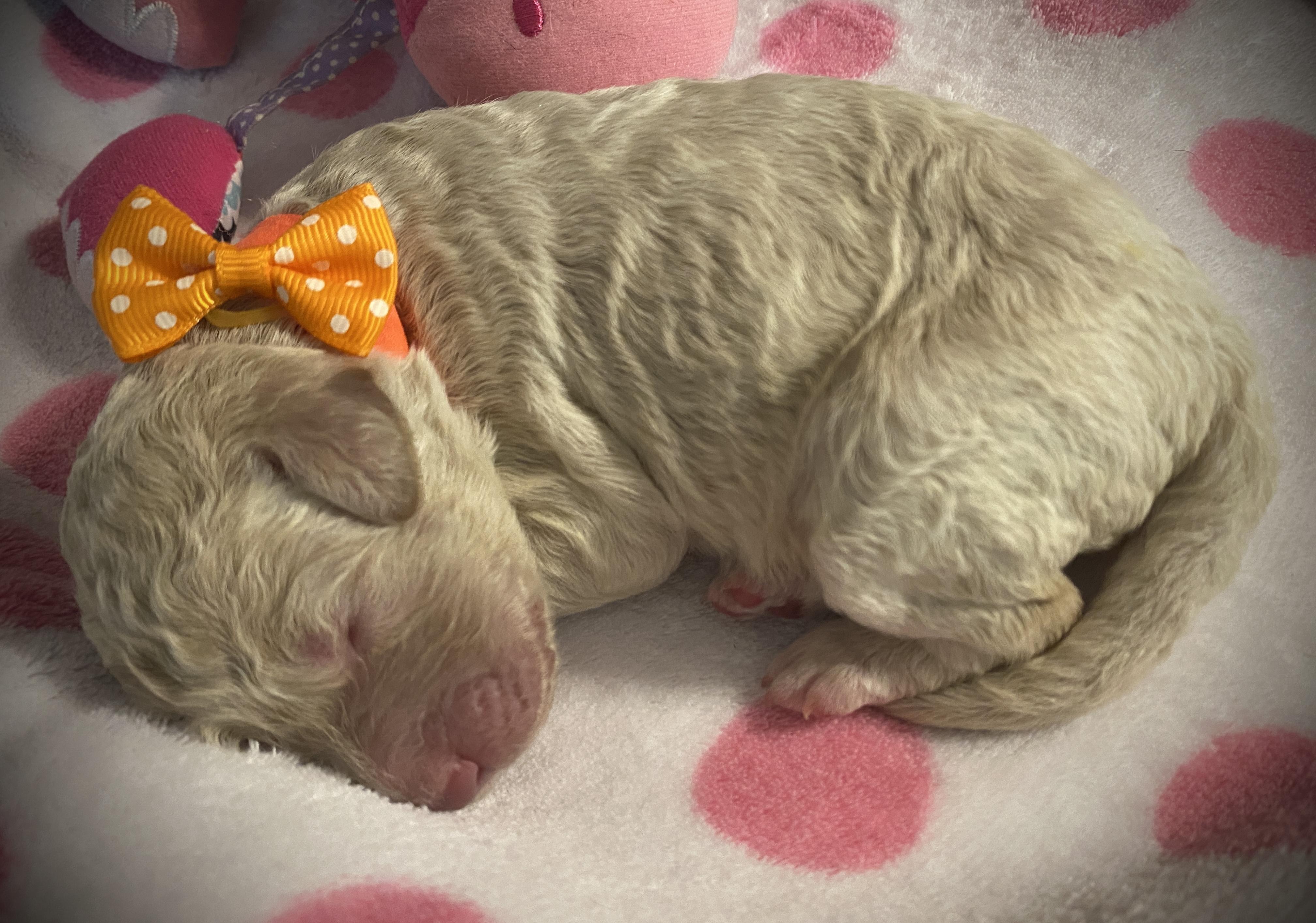 Our Goldendoodle puppies include cream, apricot, red, chocolate, and phantom. Labradoodle puppies include caramel cream, caramel, apricot, cream, chocolate, cafe, parchment, and tri-color. Colors will vary depending on the parent dogs.