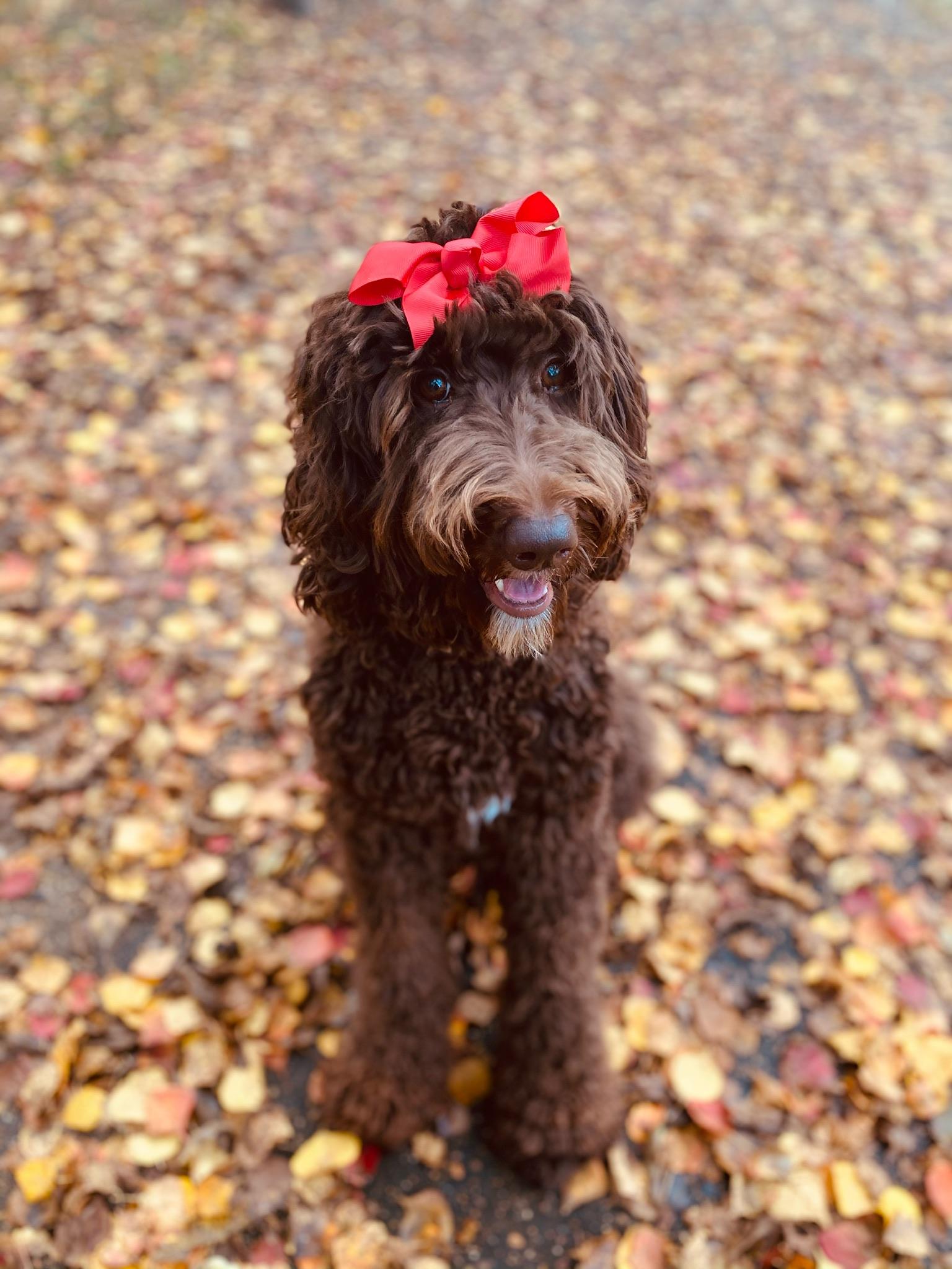 Chicory is a female Goldendoodle. Carefully selected as a great representative of her breed, Denise decided to make her part of their program. Denise has passed Good Dog’s screening process, which involved a review of their breeding practices, environment, and the mental and physical health of their dogs.
