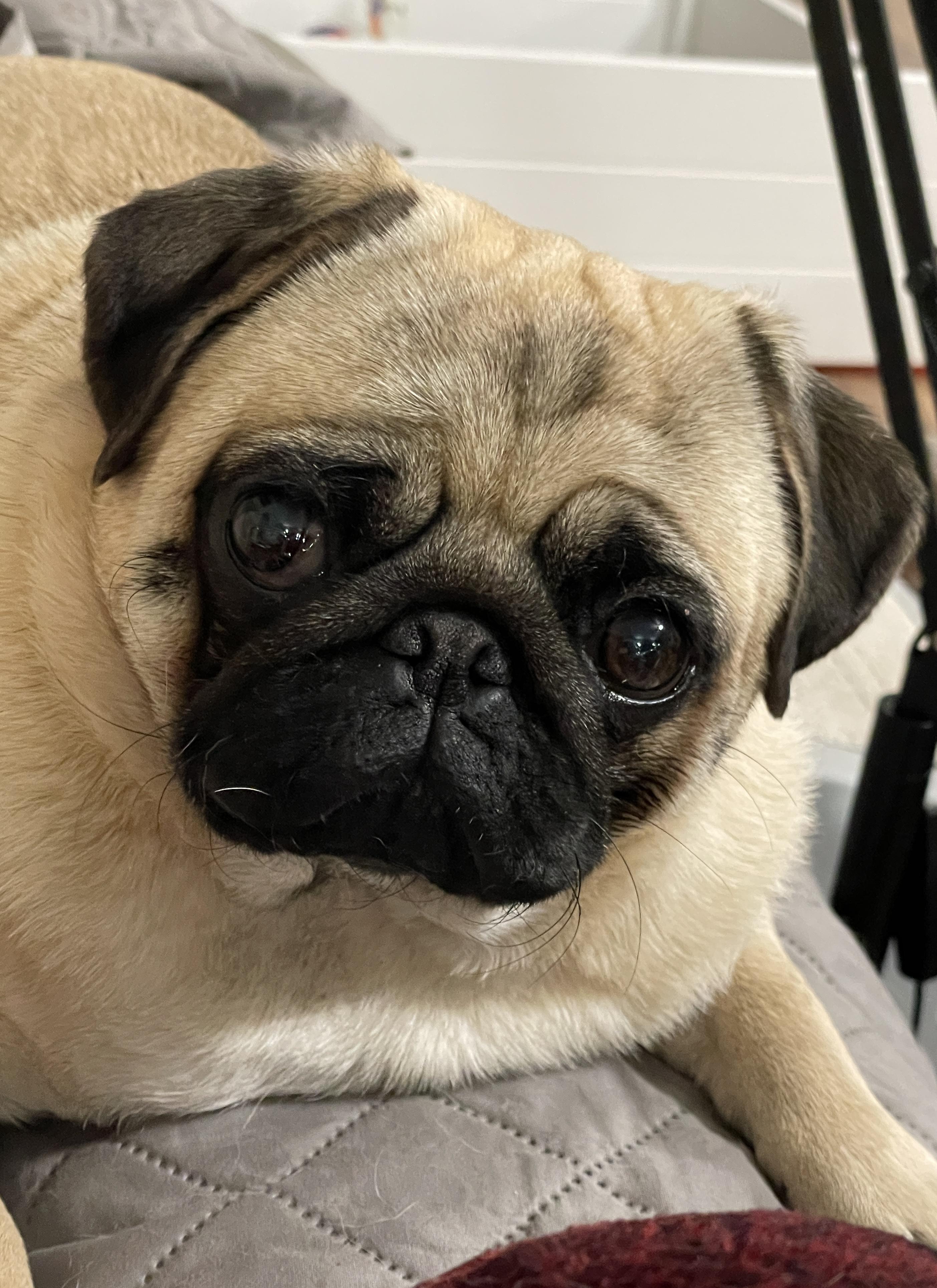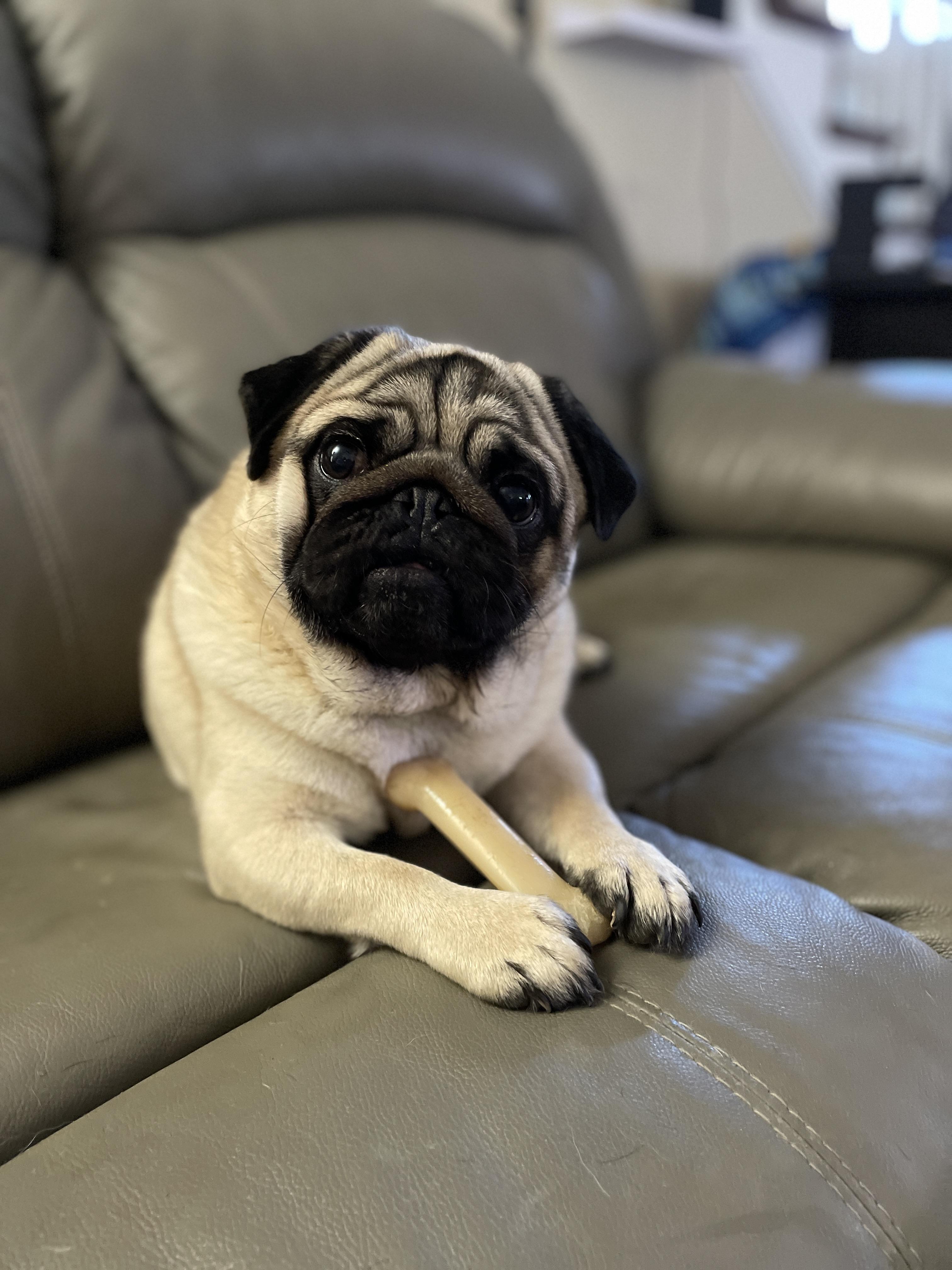Alastor is a male Pug. Carefully selected as a great representative of his breed, Catherine decided to make him part of their program. Catherine has passed Good Dog’s screening process, which involved a review of their breeding practices, environment, and the mental and physical health of their dogs.