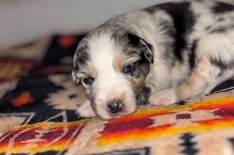 Our puppies include blue merle and red merle. Colors will vary depending on the parent dogs.