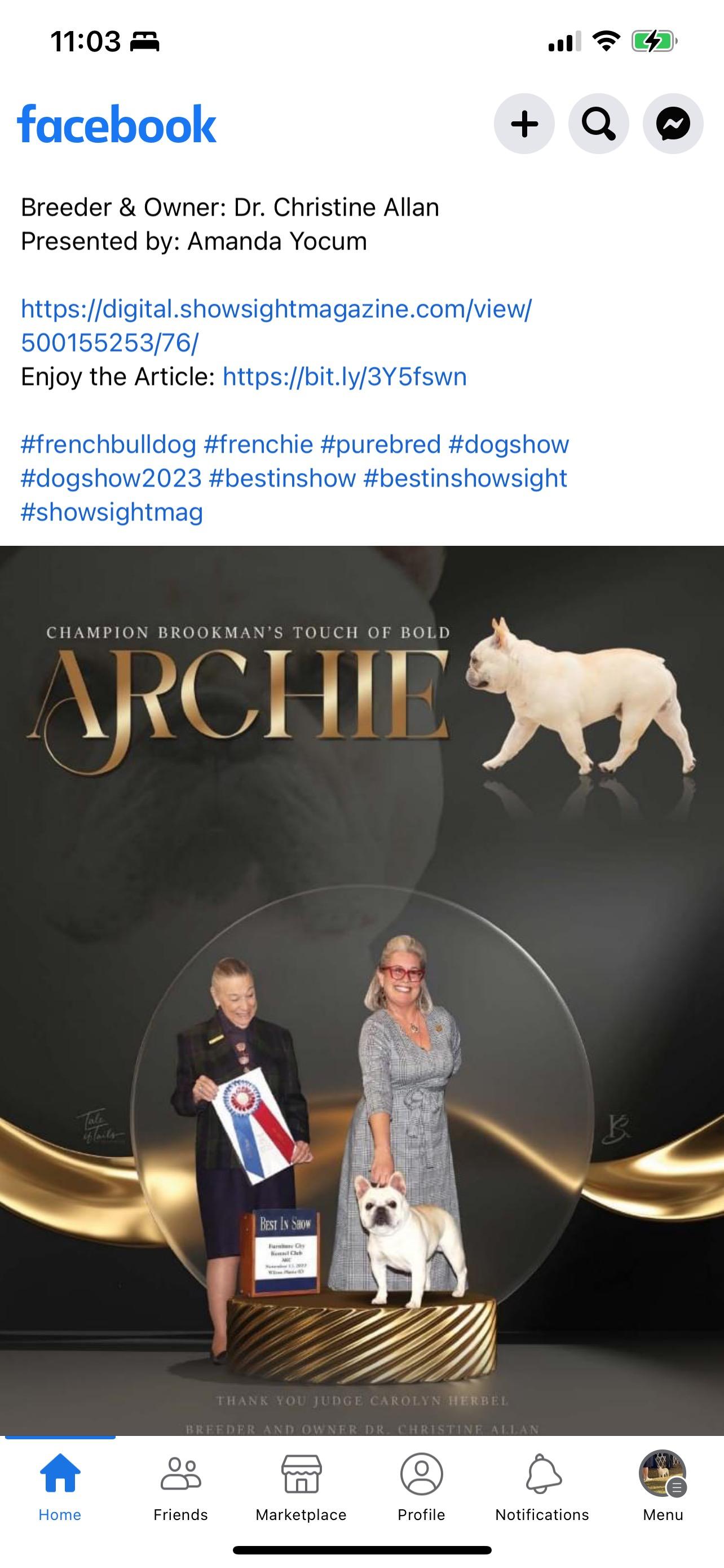 Archie is a male French Bulldog. Carefully selected as a great representative of his breed, Judy decided to make him part of their program. Judy has passed Good Dog’s screening process, which involved a review of their breeding practices, environment, and the mental and physical health of their dogs.