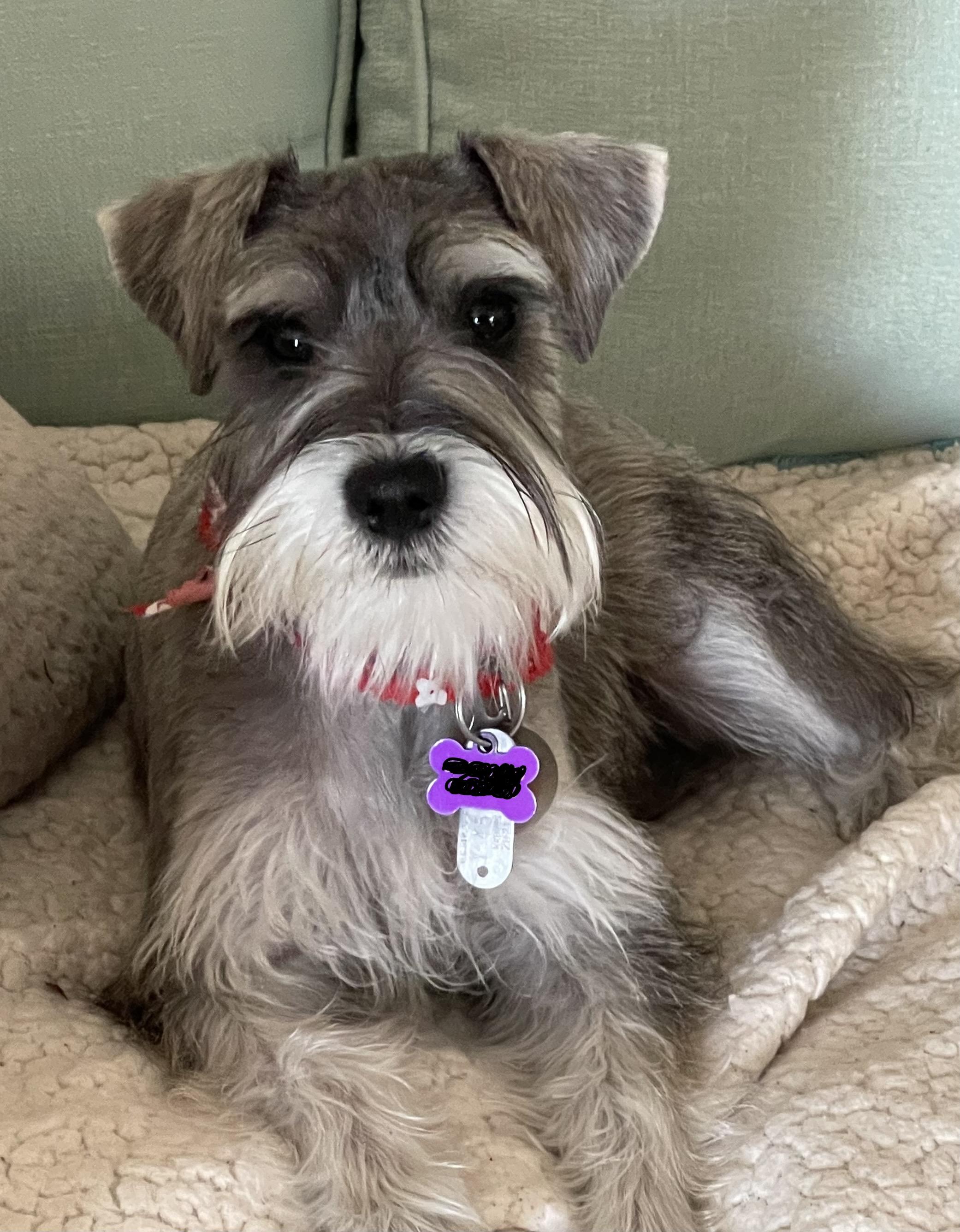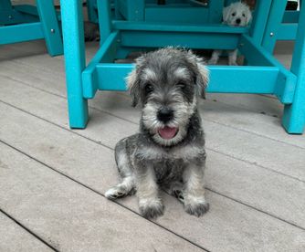 We are thrilled to have brought home our beautiful Miniature Schnauzer puppy – Pepper, just last week. We could not have had a more positive experience than we had with Pepper’s breeder, Dinah, from DJS Delightful Miniature Schnauzers. Dinah is clearly an adoring, caring, breeder and her Schnauzers are well-loved, friendly, happy, and healthy family pets. I fell in love with the mama, “Patches” immediately. From my initial communication with Dinah, she was consistently available and communicative. Even before the puppies were born, Dinah started sharing pictures and providing updates on the health of the entire litter and continued on with that communication throughout the entire process. Dinah also took the time to ensure we understood where our puppies were as far as vaccinations, weight, and health needs and made sure to inform us of all steps we needed to take to ensure we were prepared for a successful puppy home-coming. Our new puppy came to us beautiful, healthy, and well socialized.