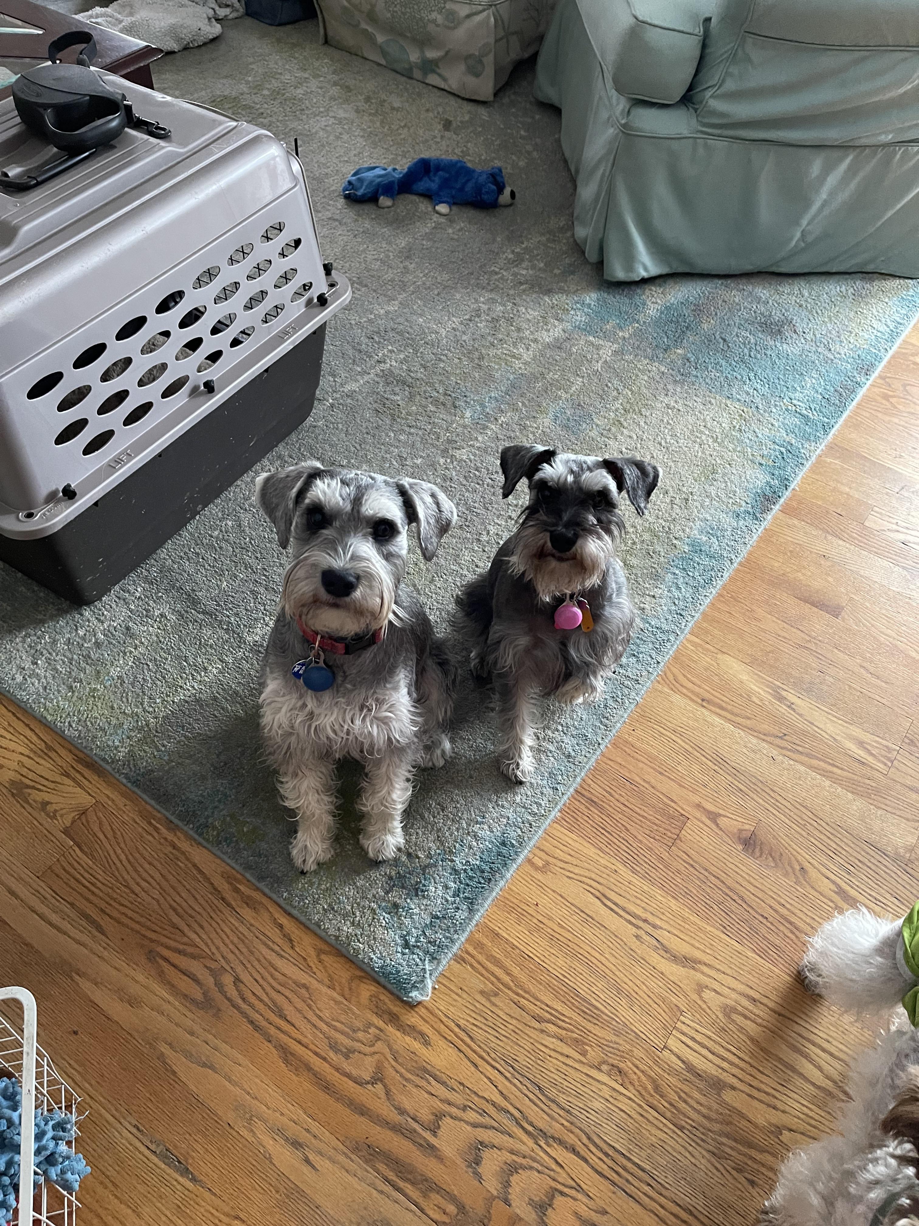 Patches at vet to see how many babies we are having. is a female Miniature Schnauzer. Carefully selected as a great representative of her breed, Dinah decided to make her part of their program. Dinah has passed Good Dog’s screening process, which involved a review of their breeding practices, environment, and the mental and physical health of their dogs.