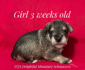 If I ever have the opportunity to add another puppy to my home, Dinah will certainly be my first contact. What a great experience: I highly recommend DJS Delightful Miniature Schnauzers!