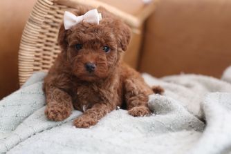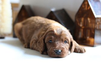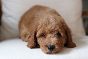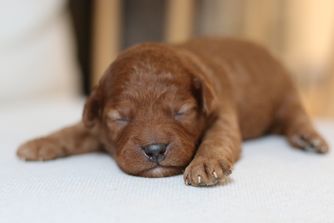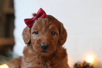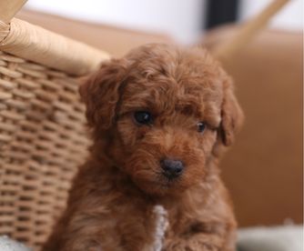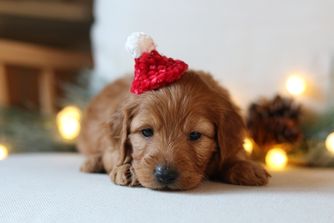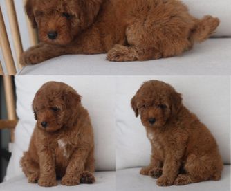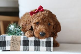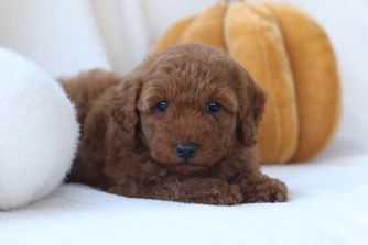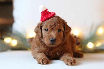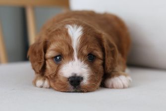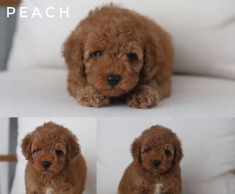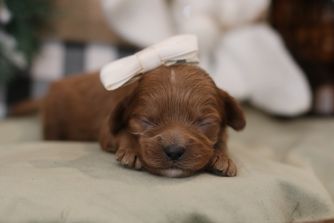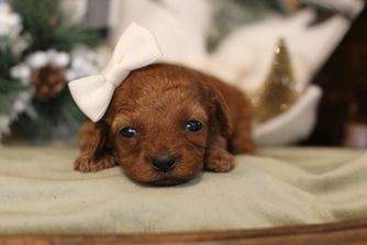 Our Cavapoo puppies include black and tan and red. Goldendoodle puppies are red. Poodle puppies include apricot, red, and phantom. Colors will vary depending on the parent dogs.