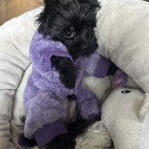She is stellar! This little pup is stellar. Eating Fresh Pet, milkbone mimis, learning leash; wearing collar around house. Vet appt 7/11/25. Microchip and vas plans. Will check worming although no symptoms. Perfect little guy. So happy!!! Nina Hill and Henry.