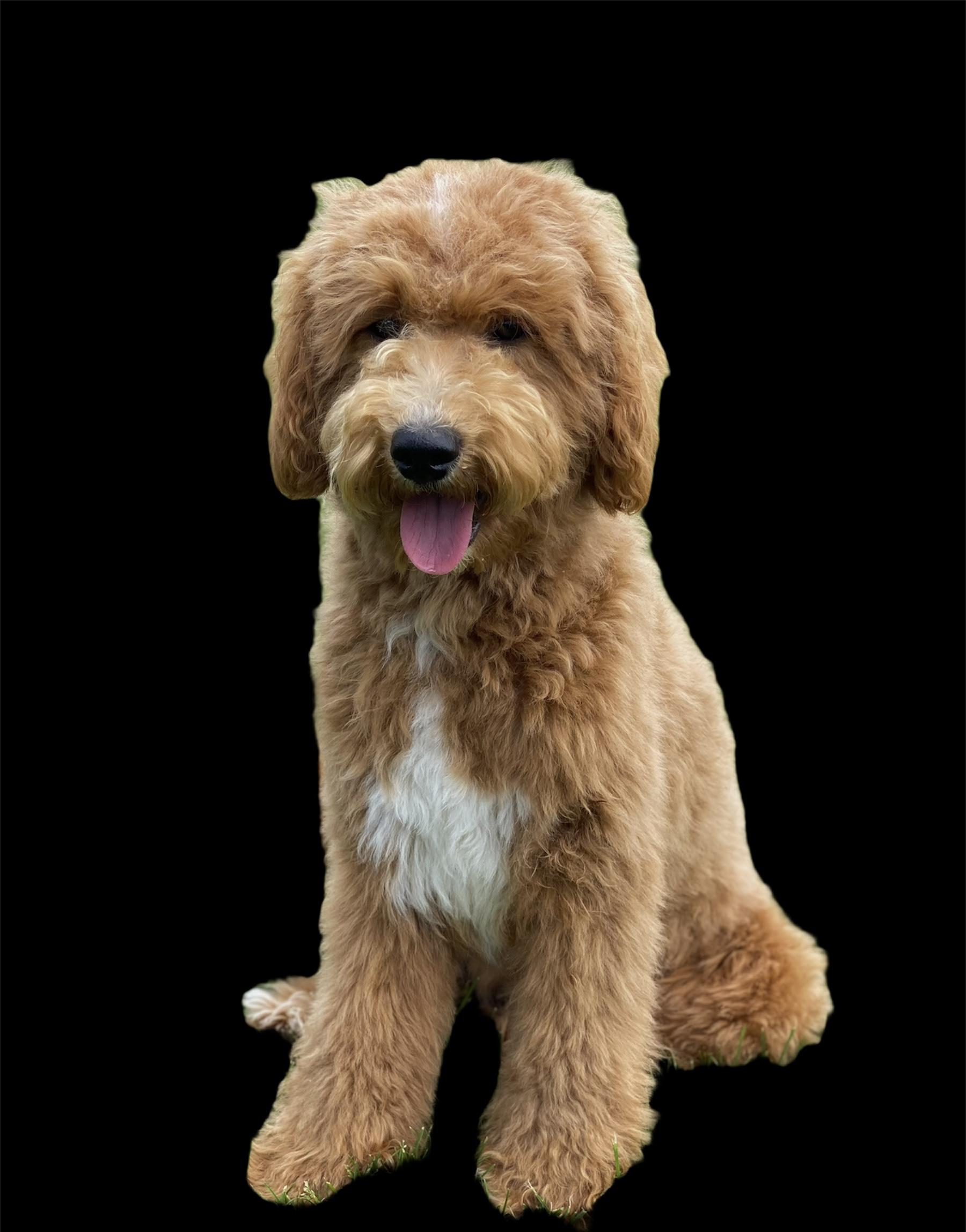 Our Goldendoodle puppies include cream, apricot, red, chocolate, black, phantom, merle, and parti. Colors will vary depending on the parent dogs.