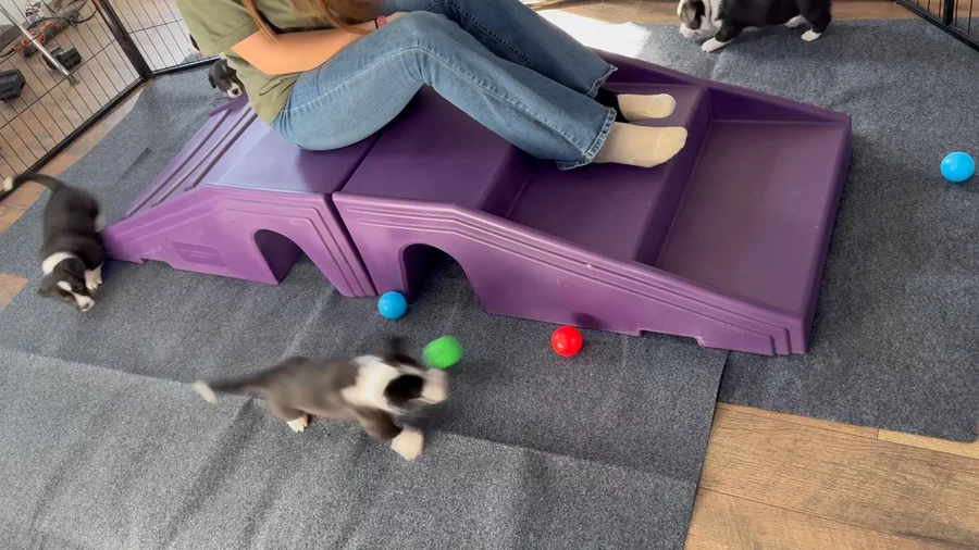 We raise all our puppies indoors and nuture and socialize them daily. All parents are DNA tested. We start potty training at 3.5 weeks old and introduce crates at 6 weeks of age for a smoother transition to their forever home. Our puppies are exposed to a variety of household sounds and activities to ensure they are comfortable in their new home. All puppies are sent home with a wonderful puppy starter kit valued at well over $100.