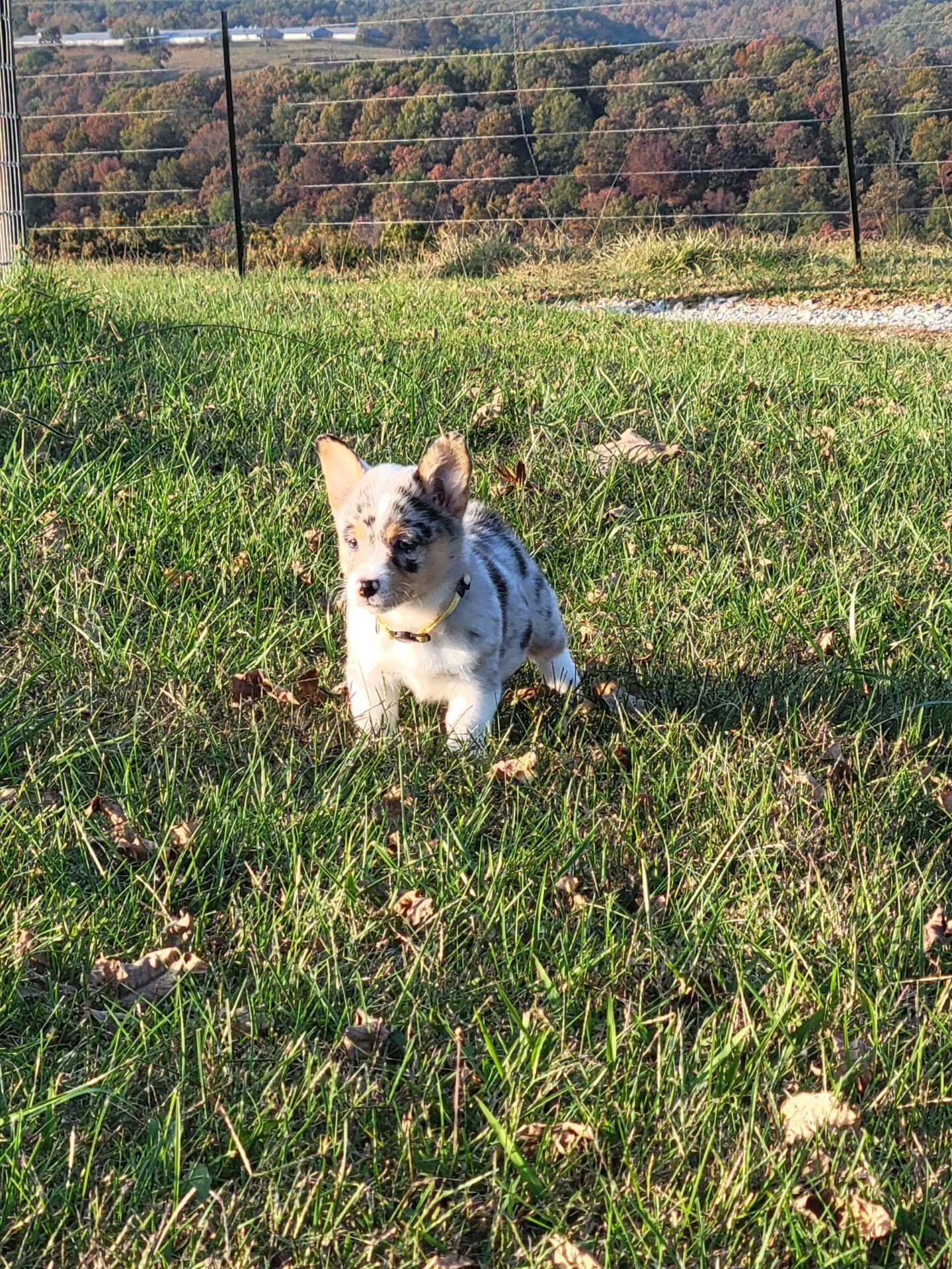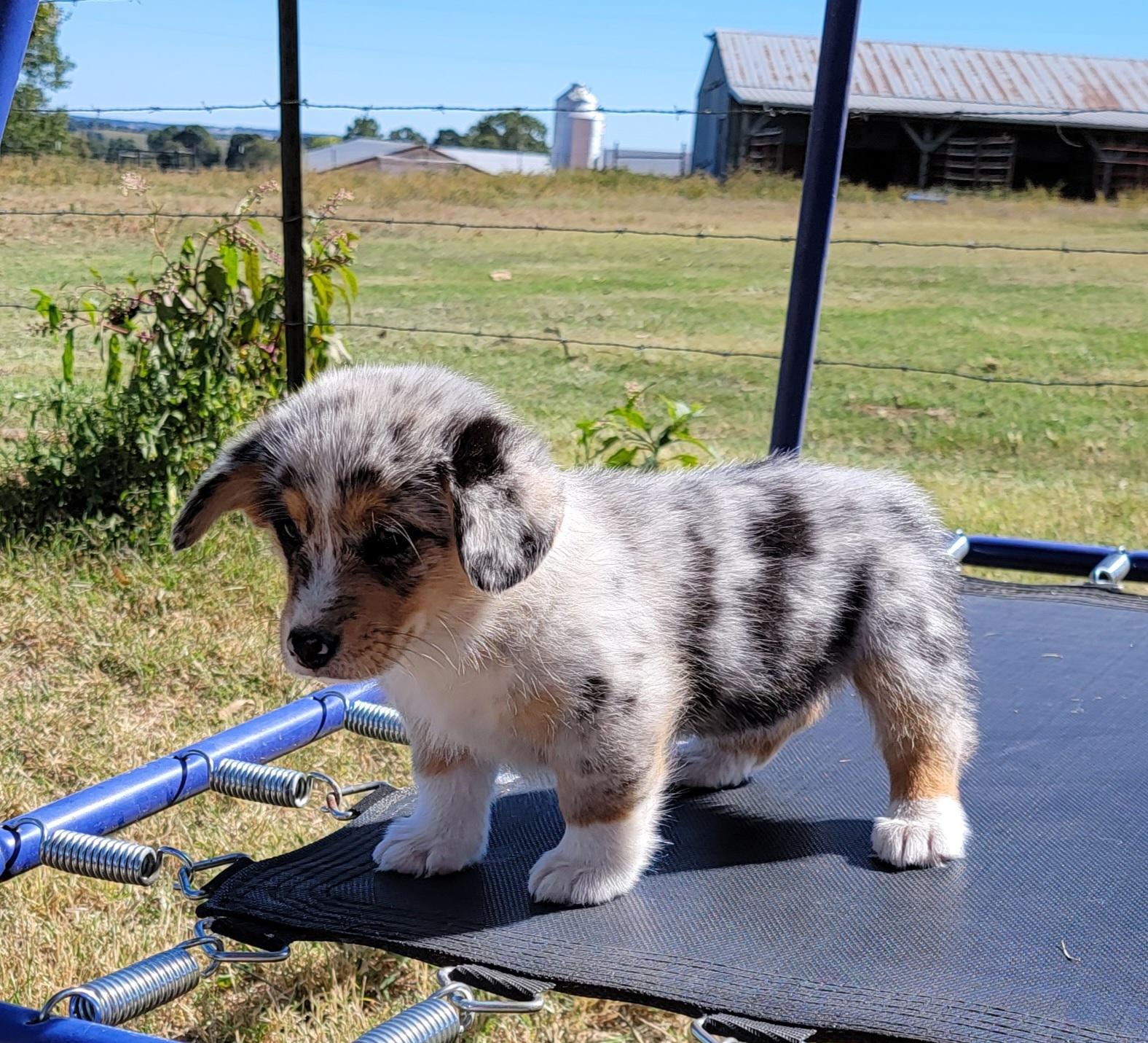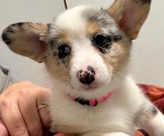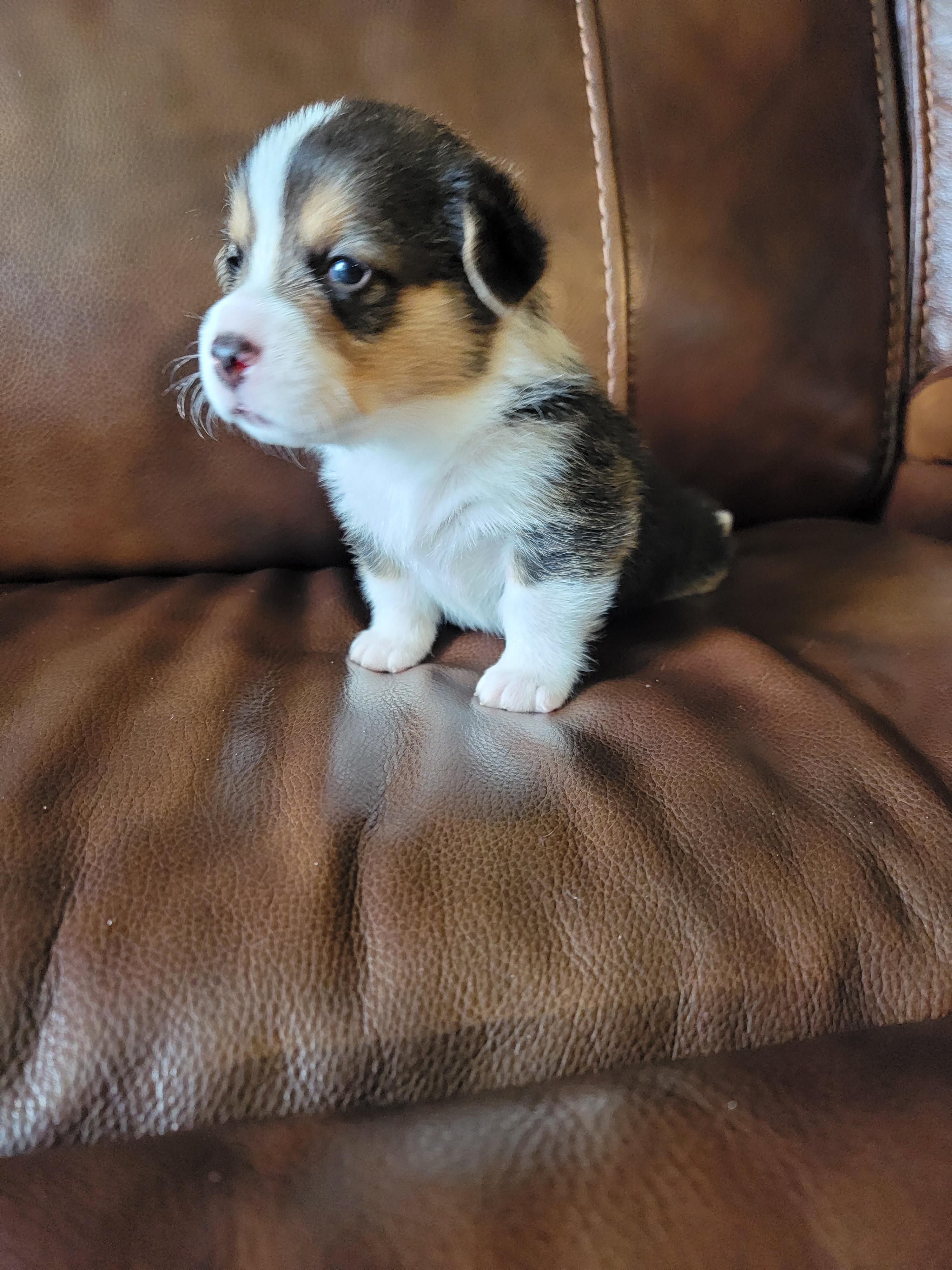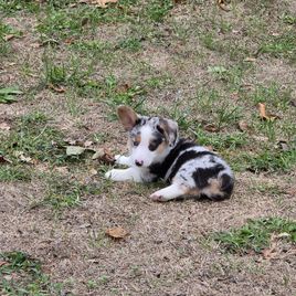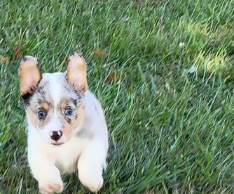 Our Cardigan Welsh Corgi puppies include black and white and blue merle and white. Pembroke Welsh Corgi puppies include white and red and black and tan. American Corgi puppies include black and tan, blue merle and white, and black and white. Colors will vary depending on the parent dogs.