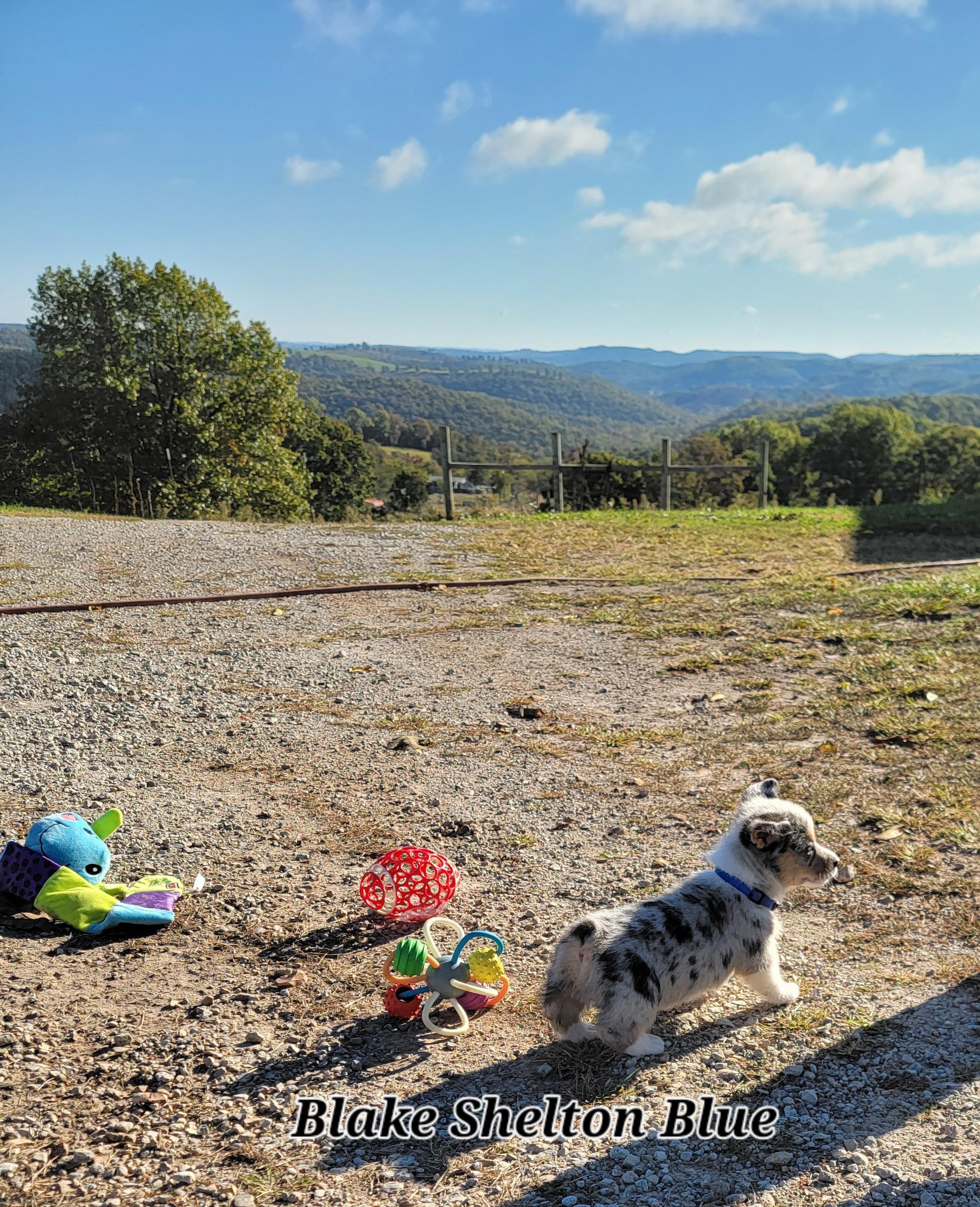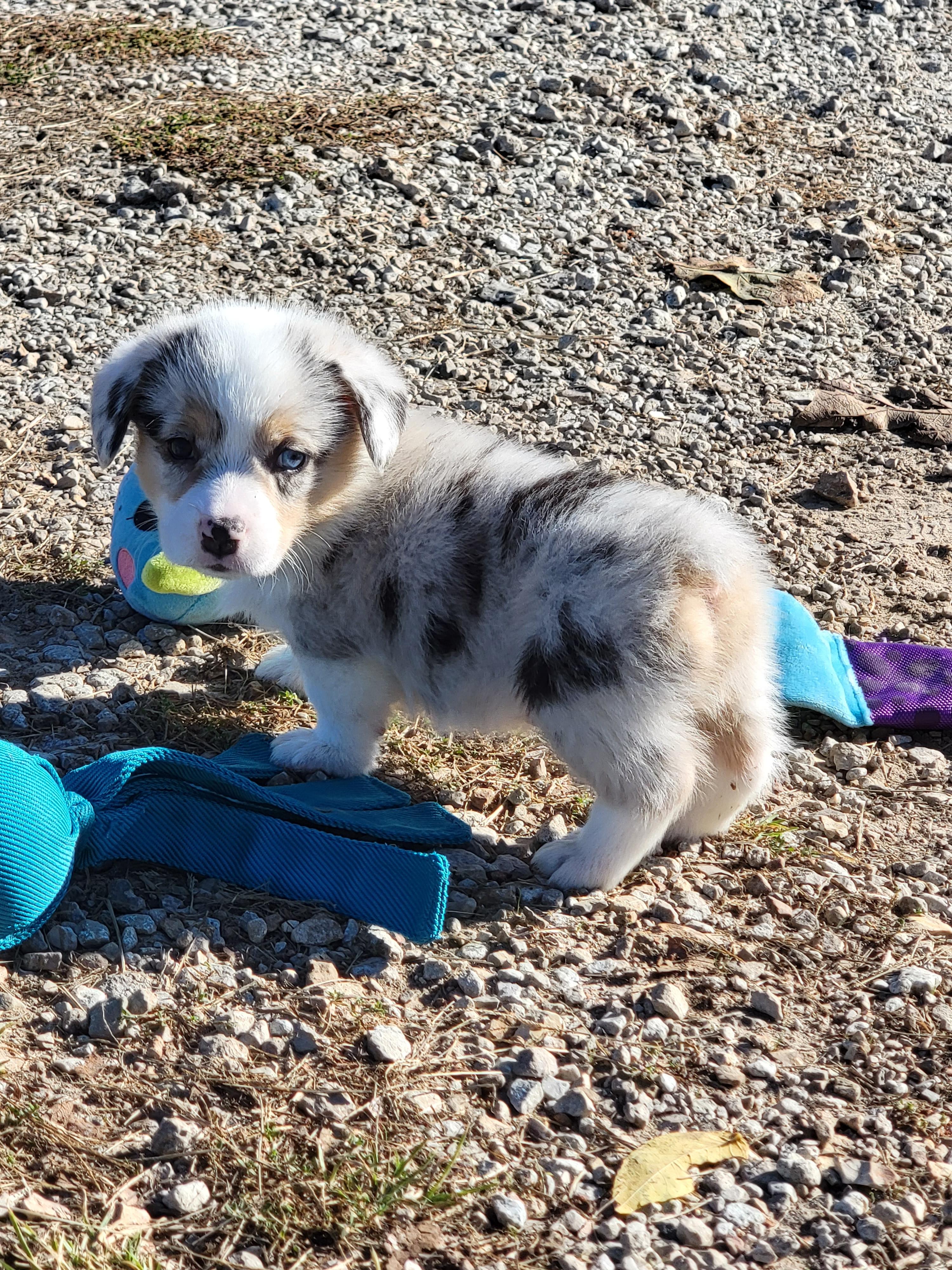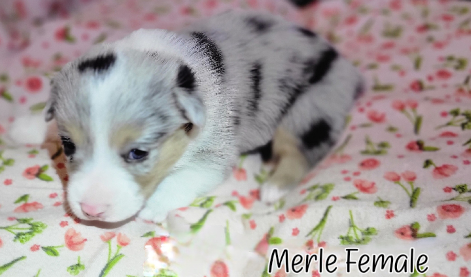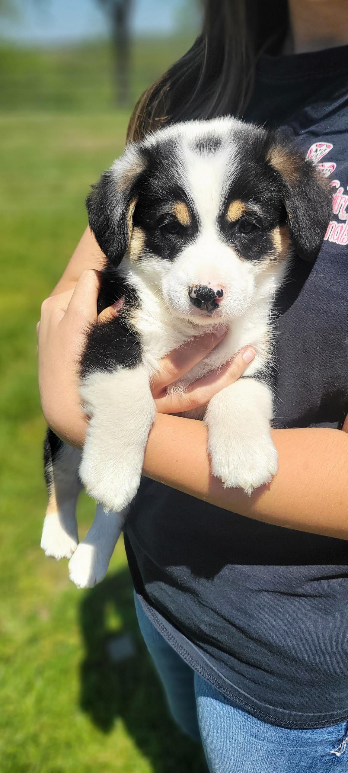 Our Cardigan Welsh Corgi puppies include black and white and blue merle and white. Pembroke Welsh Corgi puppies include white and red and black and tan. American Corgi puppies include black and tan, blue merle and white, and black and white. Colors will vary depending on the parent dogs.