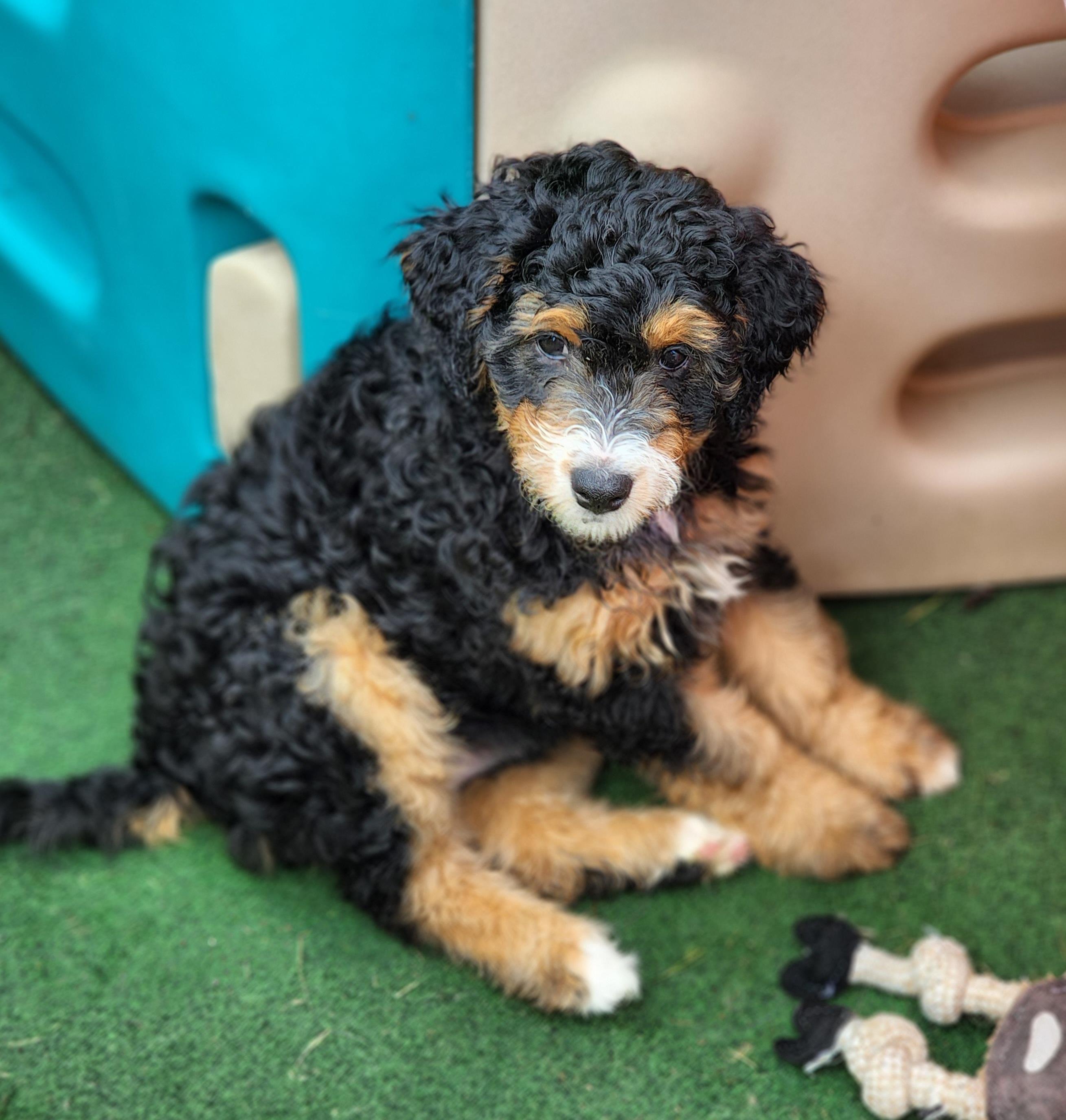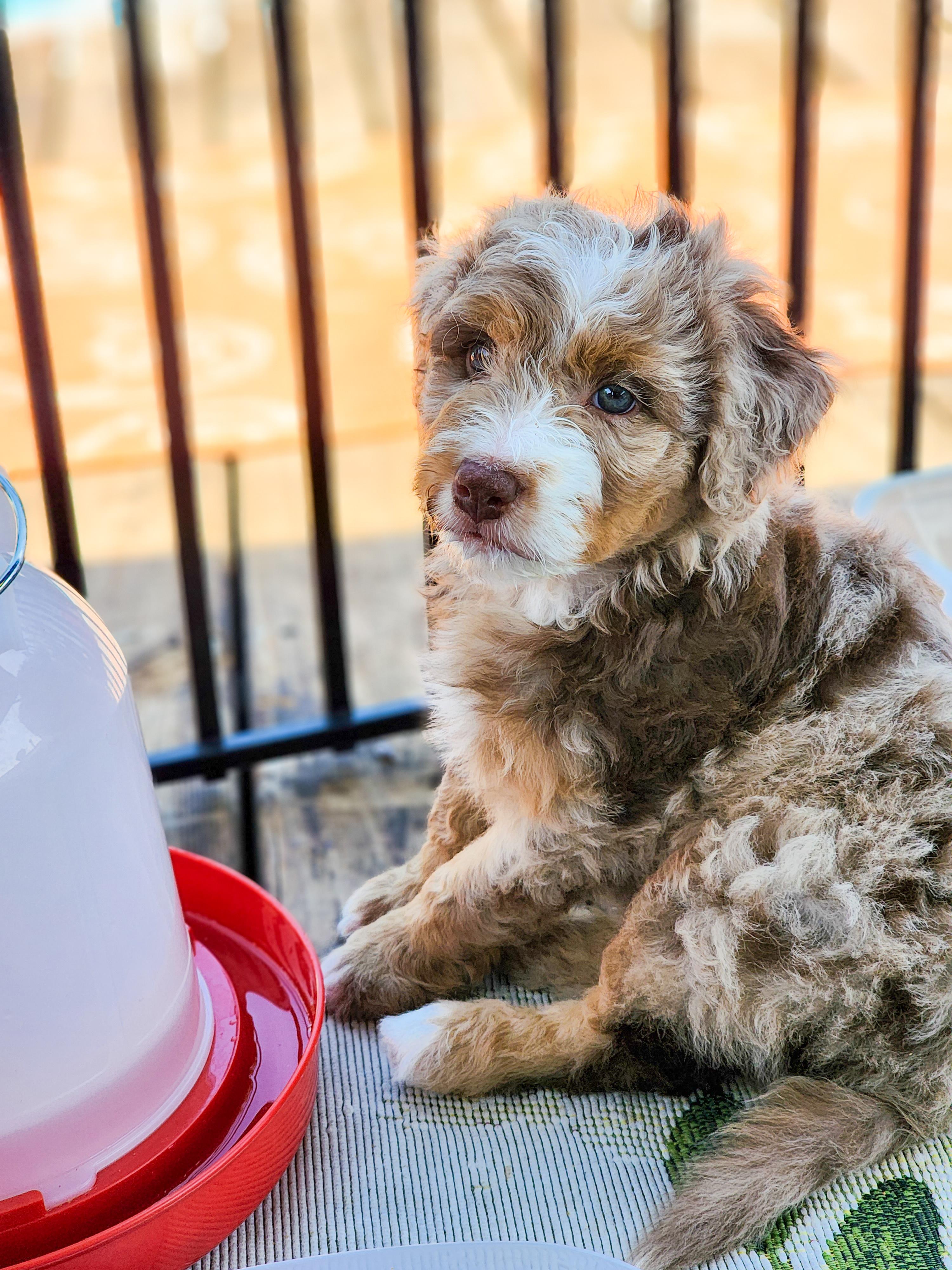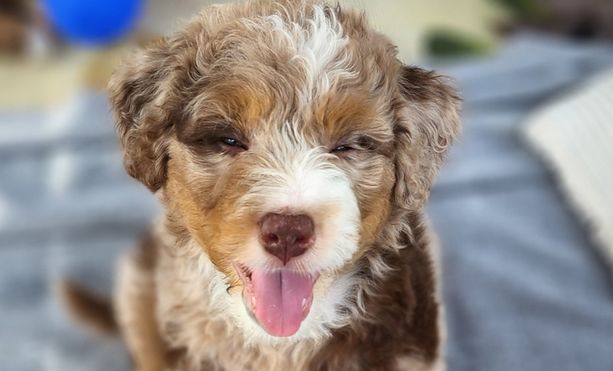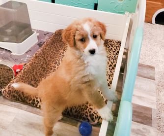 We are doodle lovers! We love the combination of a sporting breed and herding breed. Our Sire, Remington has earned his NTD Trick Dog Title, and knew he would have smart pups! He's also sweet as can be, and healthy all around! We began breeding over the Winter. We had such sweet, smart, eager to learn puppies that we knew we did everything we could to prepare them for their new homes.