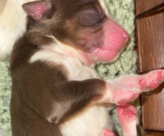 Our puppies include blue merle, red, and black. Colors will vary depending on the parent dogs.