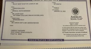 “My price includes full rights, AKC registration, first round of worming and shots.”