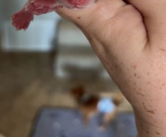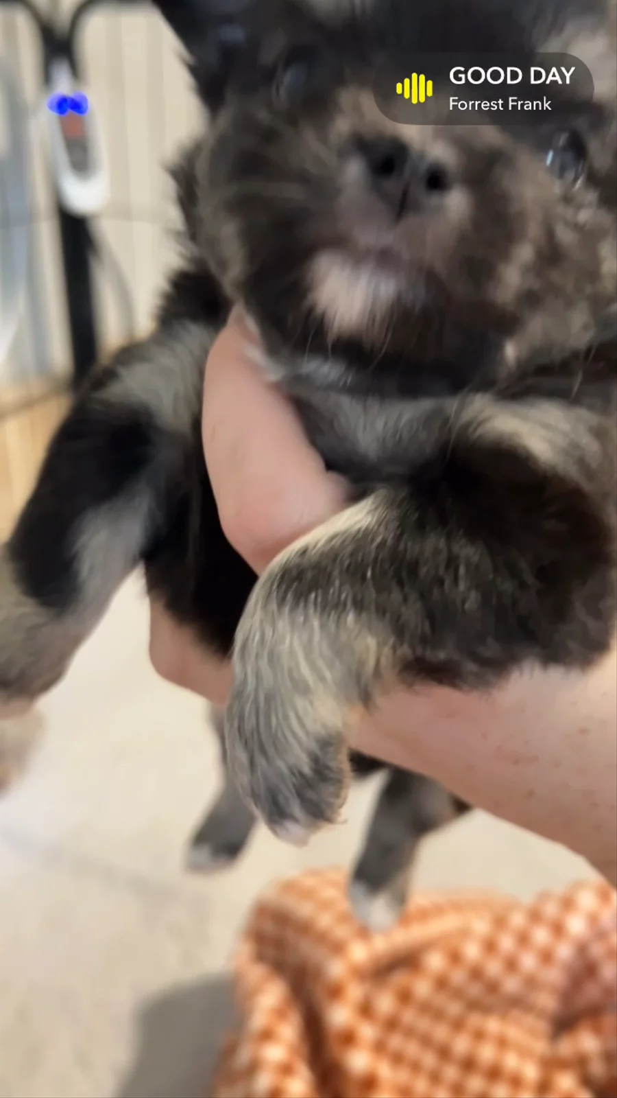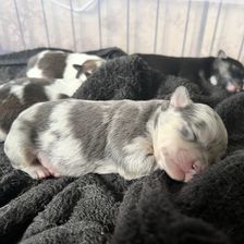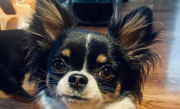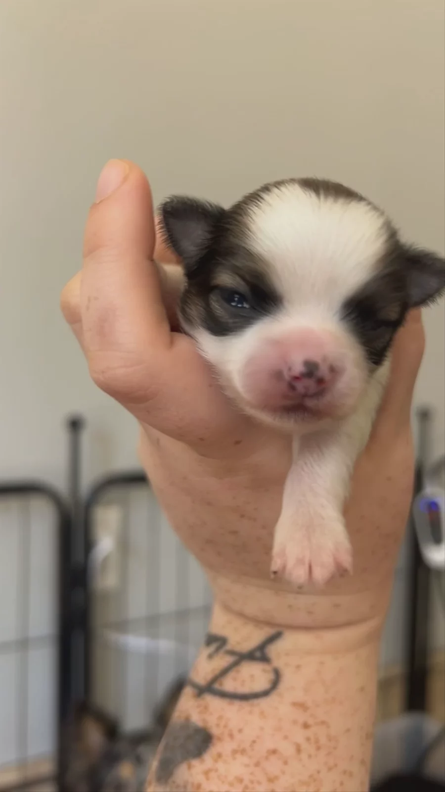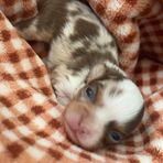 Cardi lives up to her name, very jealous. She’s our needy, snack stealin, pillow hoggin, shoulder perched parrot. She’s a Black Merle long coat, coat is very mid and super soft. Not thick at all, just visibly long. 75% of her children have her antenna ears, we are OBSESSED. 🤍🖤