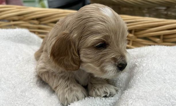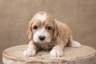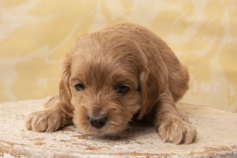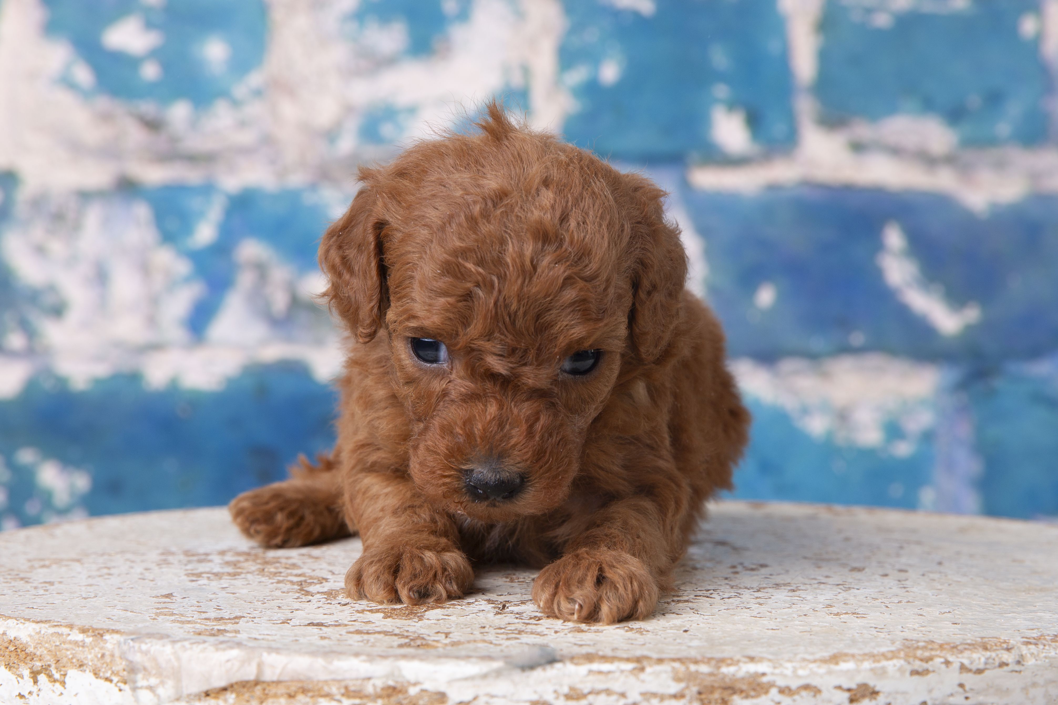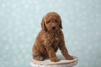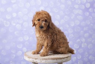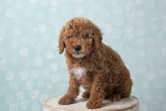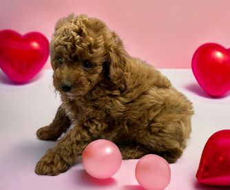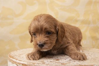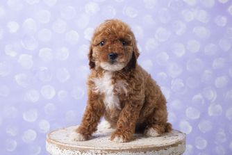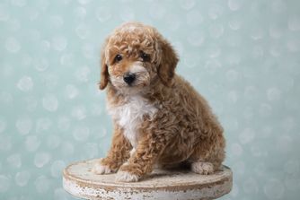 Our Cockapoo puppies include buff and white and red and white. Poodle puppies include apricot, red, and parti. Colors will vary depending on the parent dogs.