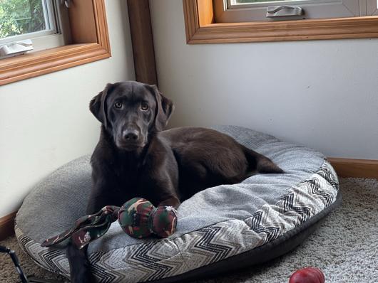 Bijou is very mild mannered and still embraces everything that makes a lab so lovable. She likes to retrieve, play with toys, swim, cuddle, and play with other dogs. She is gentle and kind, which makes her an excellent house dog!