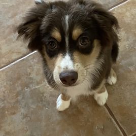 Roxie is a very attentive and an inquisitive puppy. At 4 months she is potty trained, except for those overly excited dribble moments. Her inquisitive eyes are always on the lookout for us so she knows exactly where we are. She is starting to learn our communication and actions. She really enjoys the daily golf cart ride as she snuggles between us. We fell Roxie is a positive energetic addition to our home.