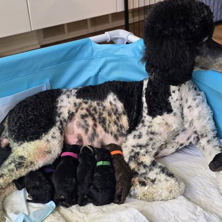 The Poodle babies are 1 weeks old and absolutely thriving! Mama Harper is doing a fantastic job taking care of them!🥰🐾