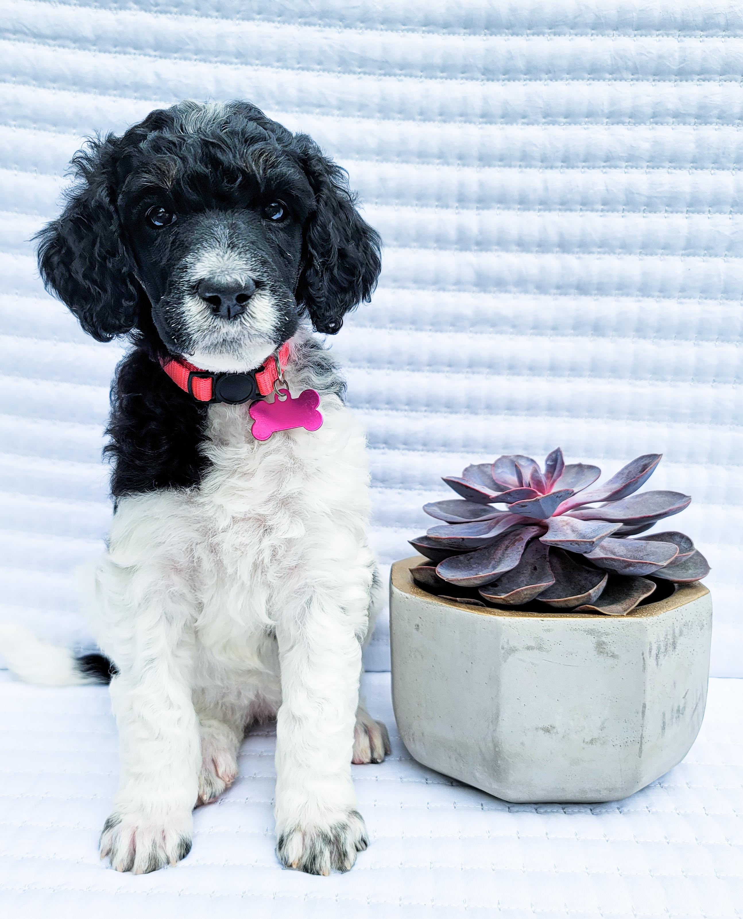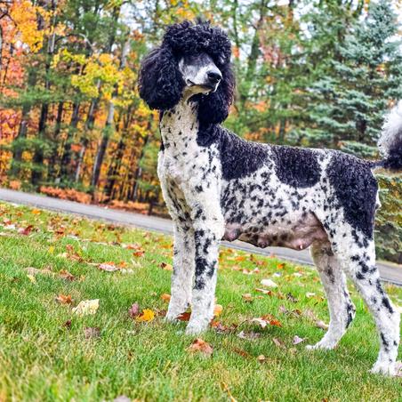 Harper is a beautifully proportioned AKC registered Standard Poodle. She is athletic, playful, loving, and affectionate.