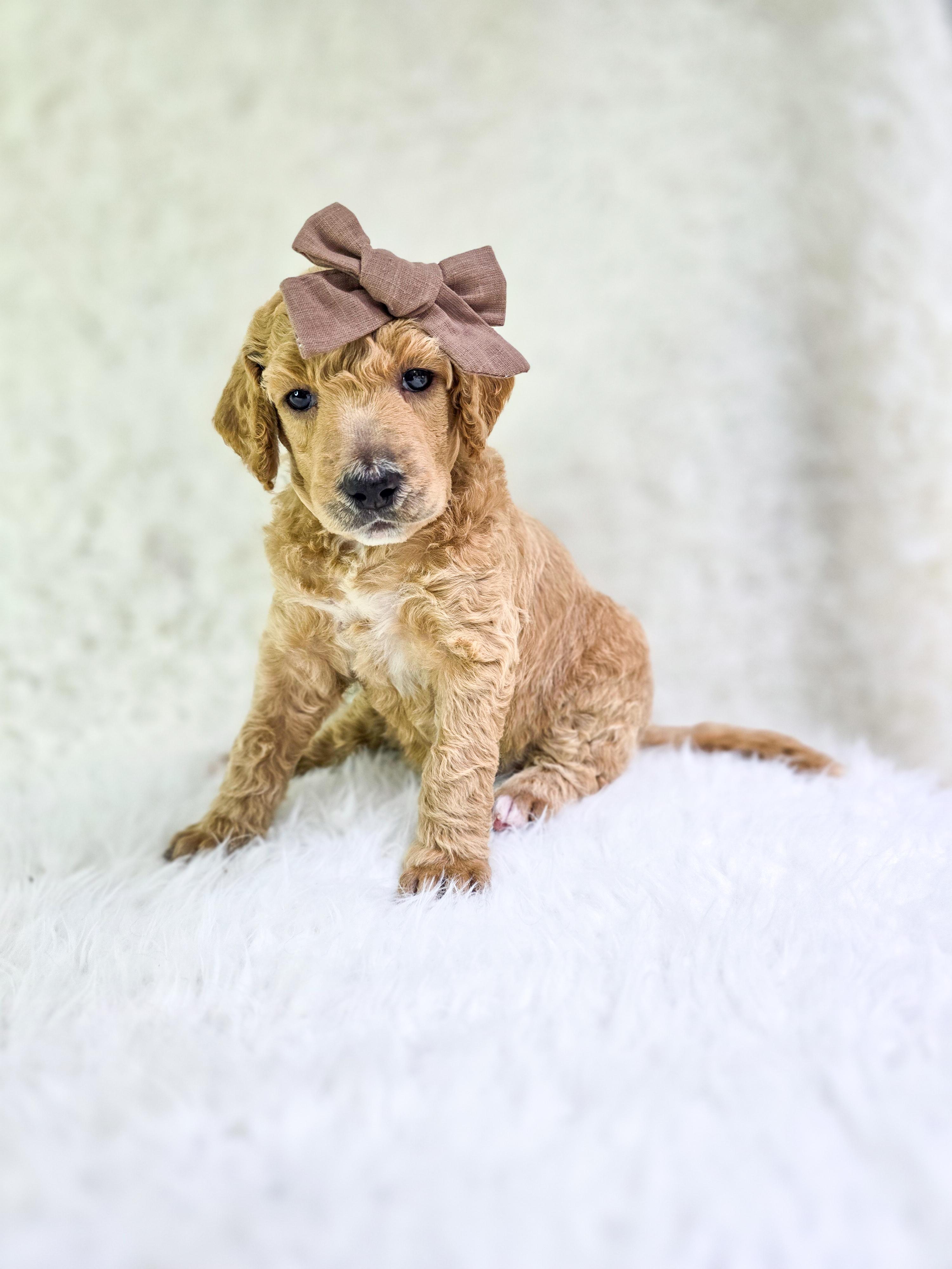 She is a small Standard Poodle who will reach her full weight at 40 lbs. We are so excited to see the amazing puppies she will produce in the future!