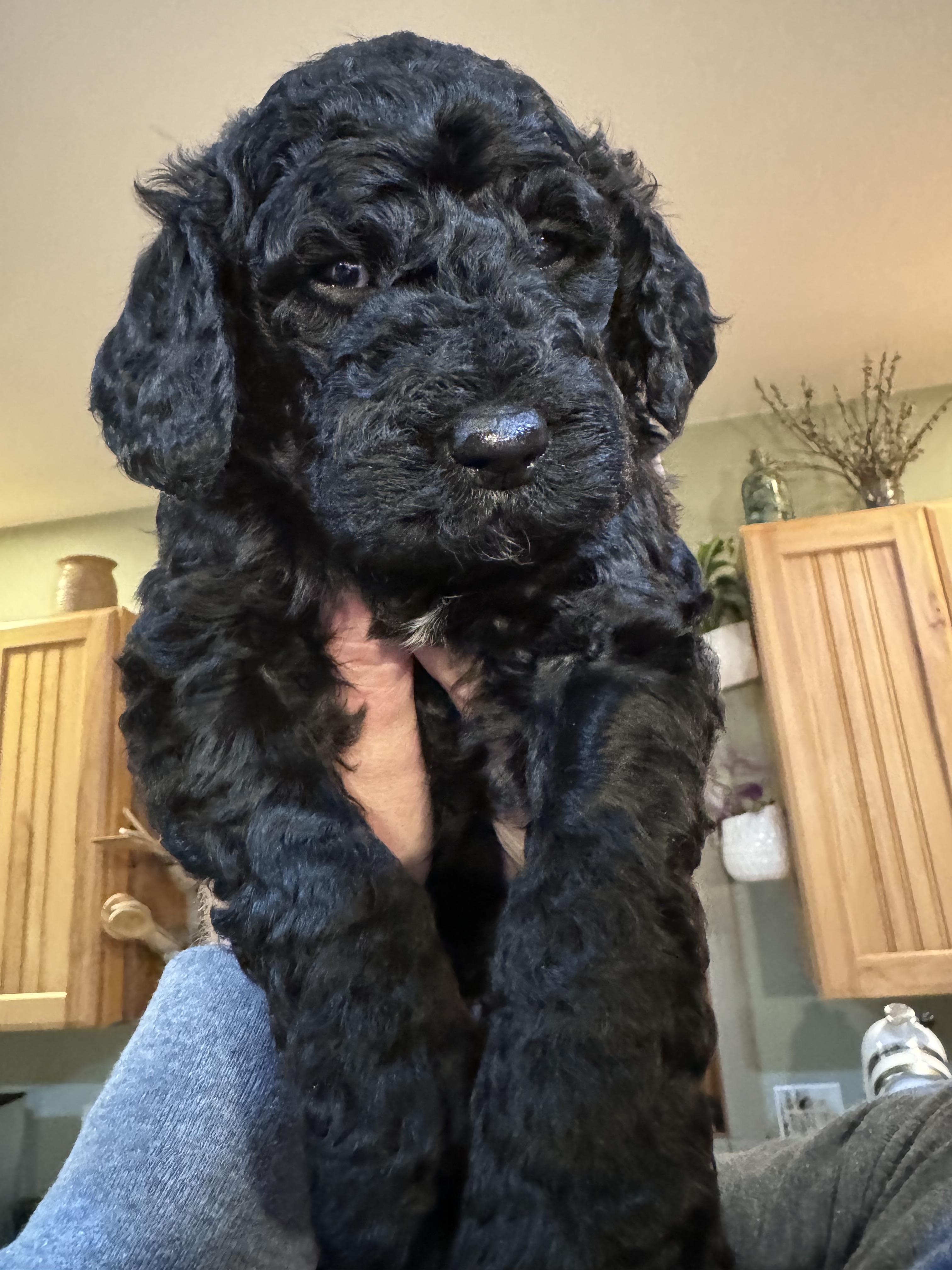 Double Doodle puppies include chocolate, cream, and black. Colors will vary depending on the parent dogs.