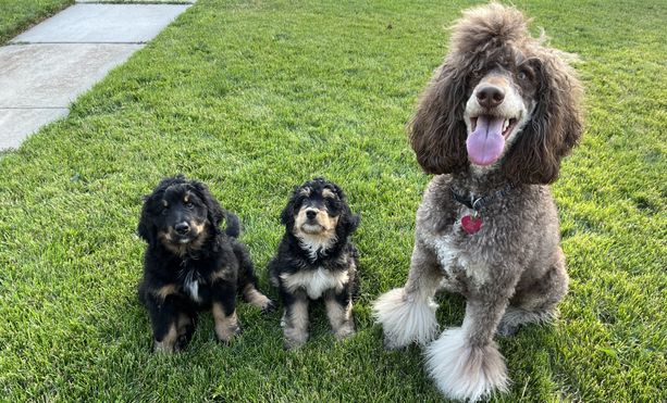 Our Poodle puppies include moyen and standard sizes. Bernedoodle puppies are standard size. Sizes will vary depending on the parent dogs.