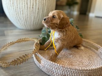 Our puppies include cream, apricot, and red. Colors will vary depending on the parent dogs.