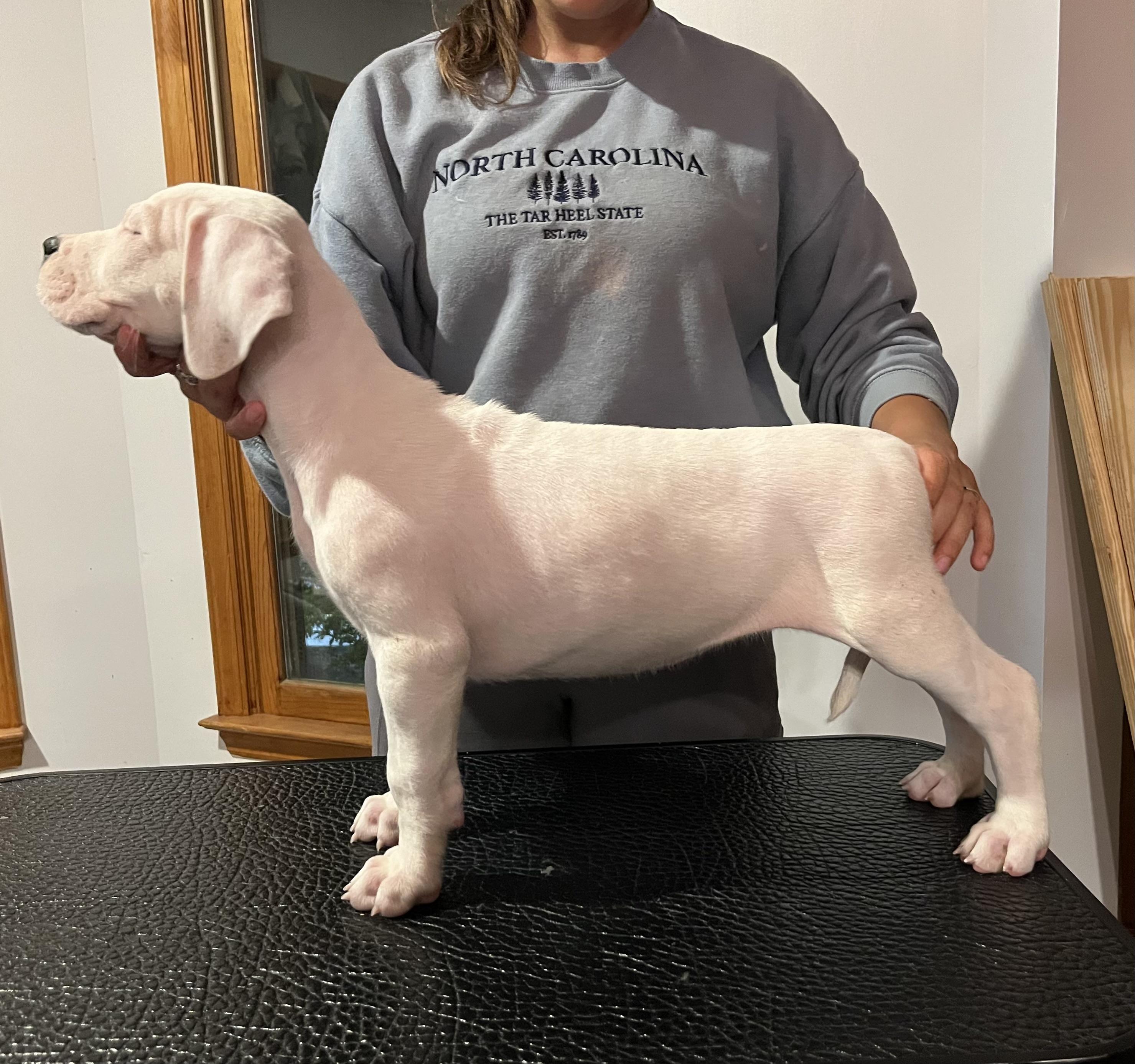 I'm Shanti P., the breeder behind Dogos Casa Monarca located in Kings Mountain, NC. At Dogos Casa Monarca we breed for ourselves and to produce the most versatile and well adjusted dogs ready for any work. We do not breed often, but when we do it is a carefully selected breeding with fully health tested dogs that are proven. The founder of Casa Monarca is a professional dog trainer of 10y in the field with a specialty in behavior modification. Having worked with a wide range of performance dogs, behavioral cases, and more, Casa Monarca’s goal is to raise puppies in a way that will set them and their owners up for success no matter what their goals are. We have developed and continue to perfect early socialization protocols to ensure the best possible outcomes for every puppy that is raised in our home. We follow the puppy culture program, do ENS and ESI. The proof is in our puppies, Just ask our wonderful puppy owners!
