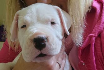 I'm Lynn F., the breeder behind Dogos del Gran Reino located in Blythe, CA. Our goal is to produce the highest quality Dogo Argentino puppies with sound temperament, structure, movement, and drive. Any of our puppies will make make excellent pets, courageous hunters or possible future champions in the ring. We are working to preserve the breed according to the original standards written by its creator, Dr. Antonio Nores Martinez. All of our Dogos are health tested before they are bred. This means they will have a hip examination (OFA), elbow exam, eye exam, and heart exam. They are all full hearing in both ears and have already been B.A.E.R. tested. Additionally, our Dogos are all mulit-champions of the breed and each has several titles with different organizations. They have been evaluated by professional judges which show they exhibit the best qualities, structure, and temperament of the Dogo Argentino breed. We love our dogs and are passionate about our breeding program. We look forward to connecting with you!
