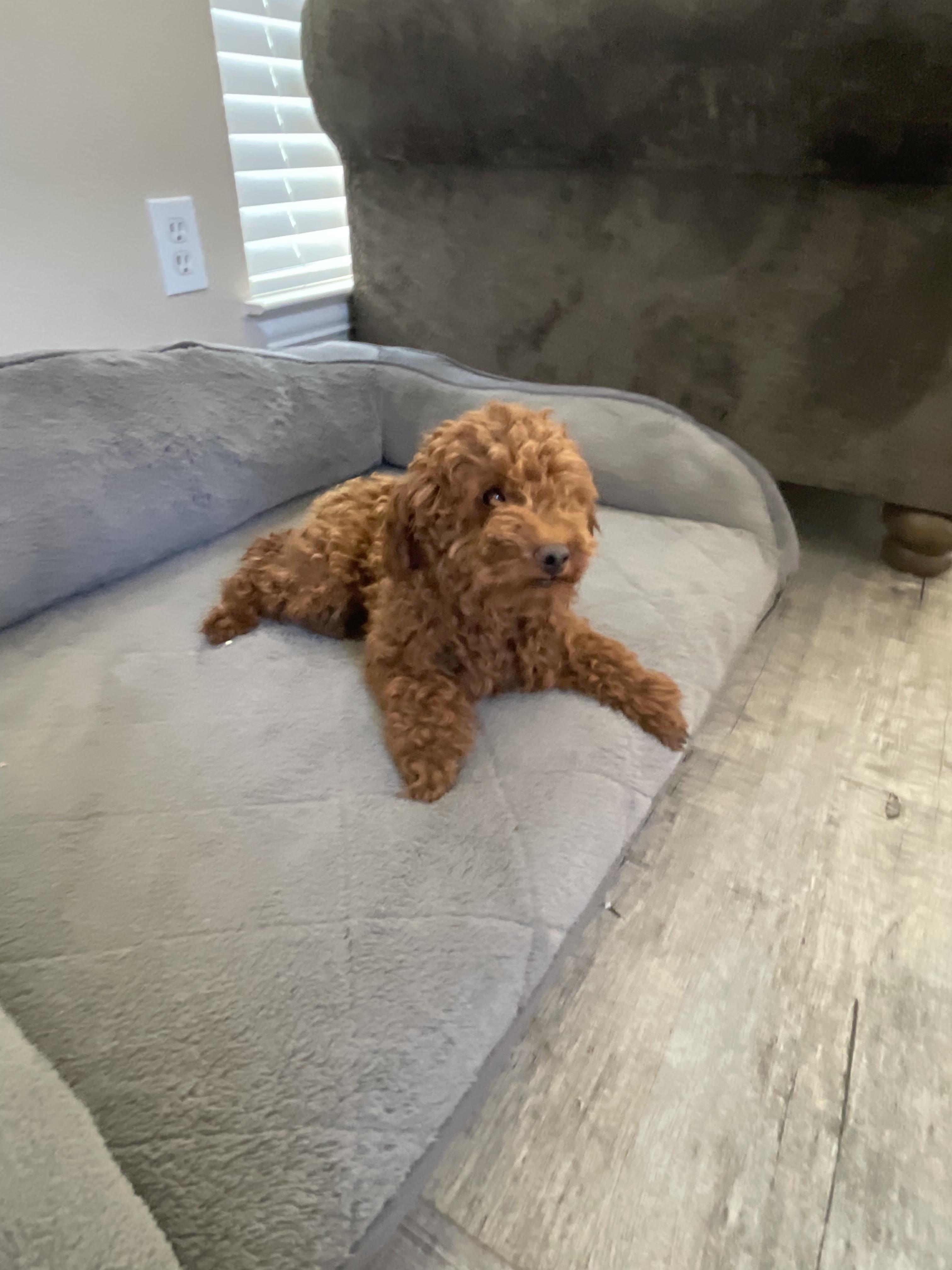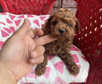 Poodle puppies are toy size. Sizes will vary depending on the parent dogs.