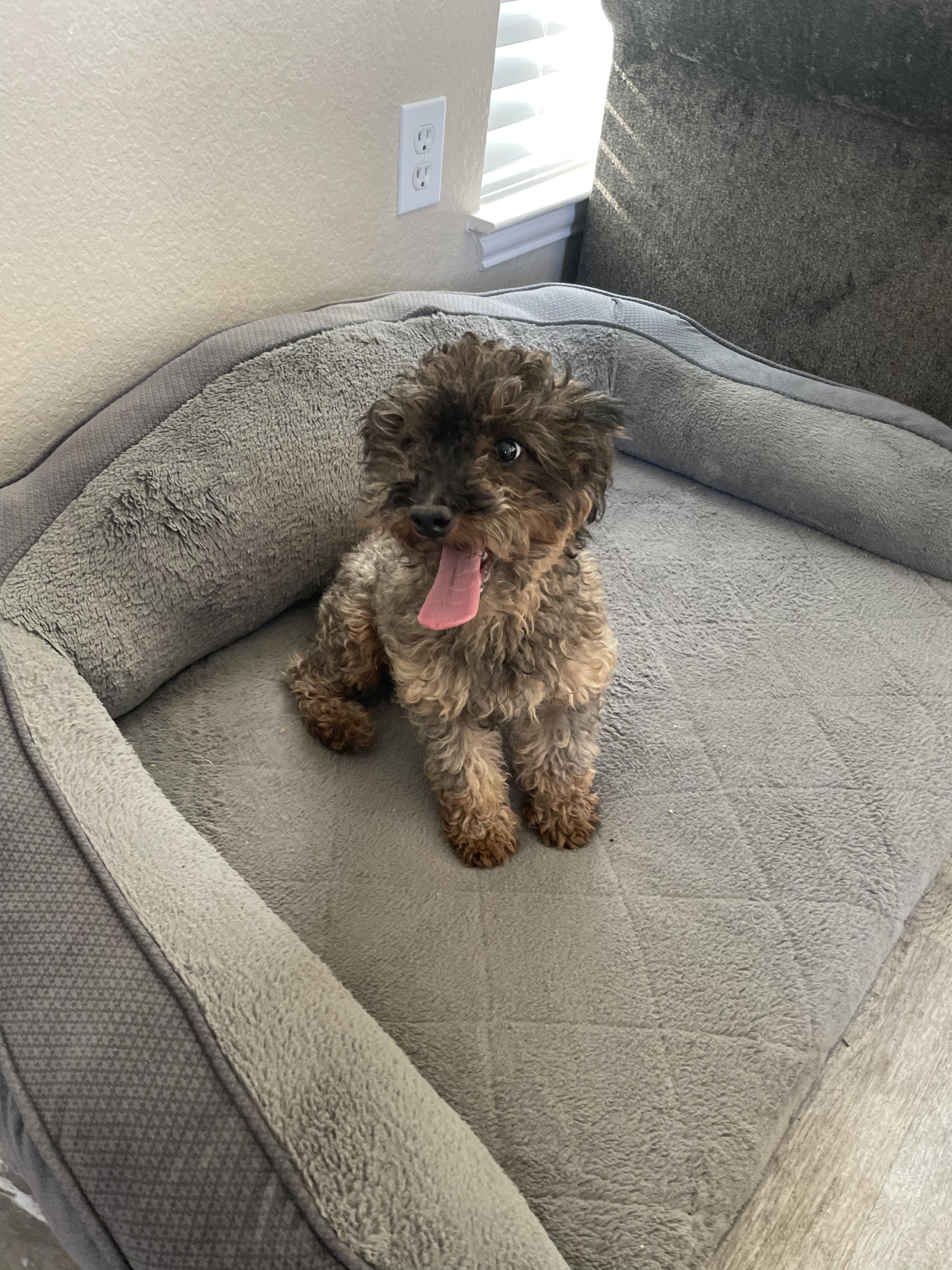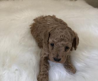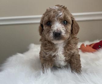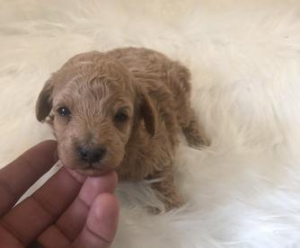 Our Pekingese puppies include fawn brindle, black, cream, and fawn sable. Poodle puppies include apricot, brown, cream, red, and white. Colors will vary depending on the parent dogs.