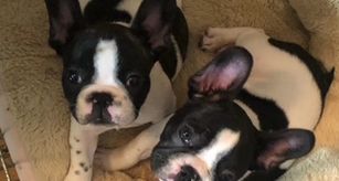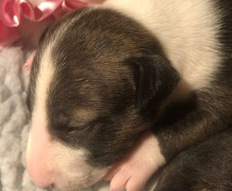 Our French Bulldog puppies include brindle, fawn, fawn and white, fawn brindle and white, and brindle and white. Miniature Bull Terrier puppies include white and brindle, white, red and white, red, fawn, brindle and white, black tan and white, brindle, and black and brindle. Colors will vary depending on the parent dogs.