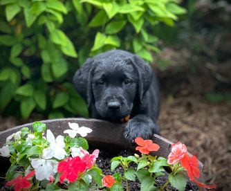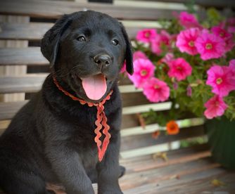 Our Labrador Retriever puppies include black and yellow. German Shepherd puppies include sable, black, black and tan, and bi-color. Colors will vary depending on the parent dogs.