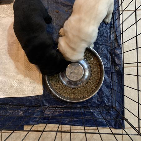 Cookie and Creme are learning to eat like big dogs! They still need mom but it’s precious to see them growing up just the same.