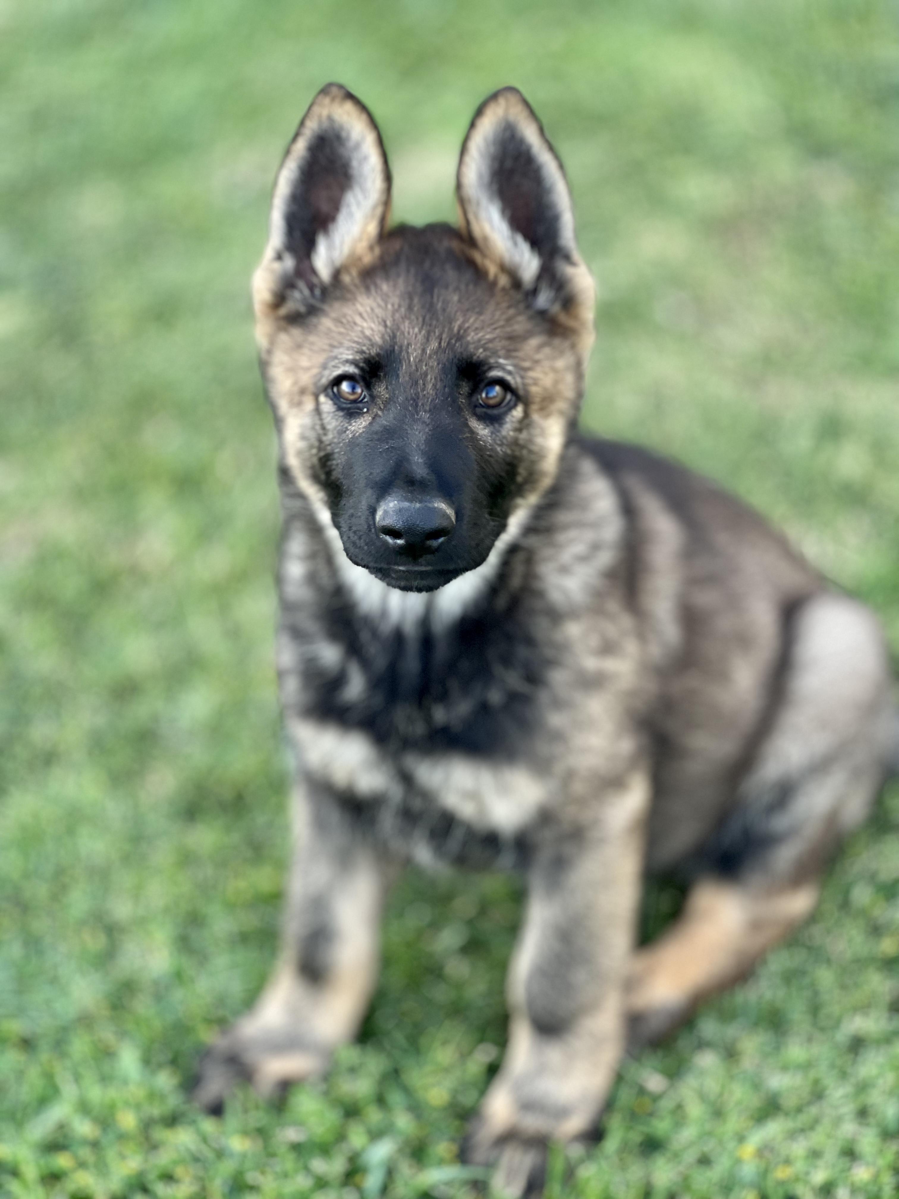 Daughter of the famous Black Jack von der Teufelskehle - Dana is our import from Germany who is super stable, confident and very clean in the house and kennel. She is IGP2 titled under the SV in Germany, and she is of excellent health and vitality generally.